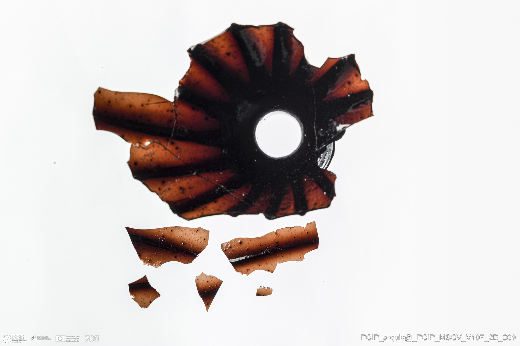 Matéria/Técnica: Vidro; Cronologia: Século XVII; Autoria: Desconhecida; Dimensões: Diâmetro do bordo: 39mm.
