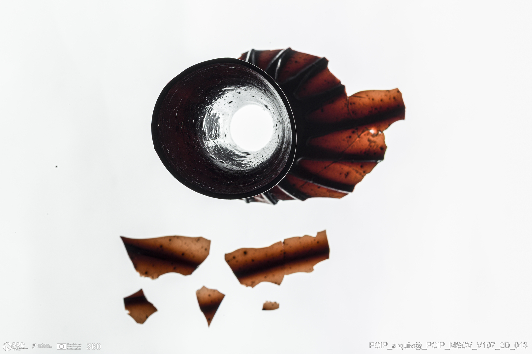 Matéria/Técnica: Vidro; Cronologia: Século XVII; Autoria: Desconhecida; Dimensões: Diâmetro do bordo: 39mm.