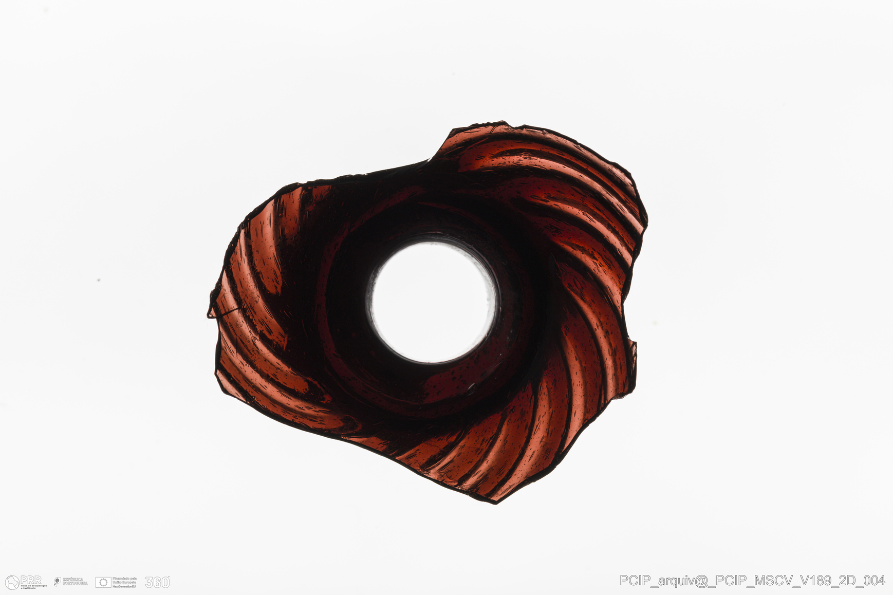 Matéria/Técnica: Vidro; Cronologia: Século XVII; Autoria: Desconhecida; Dimensões: Diâmetro bordo: 31mm.