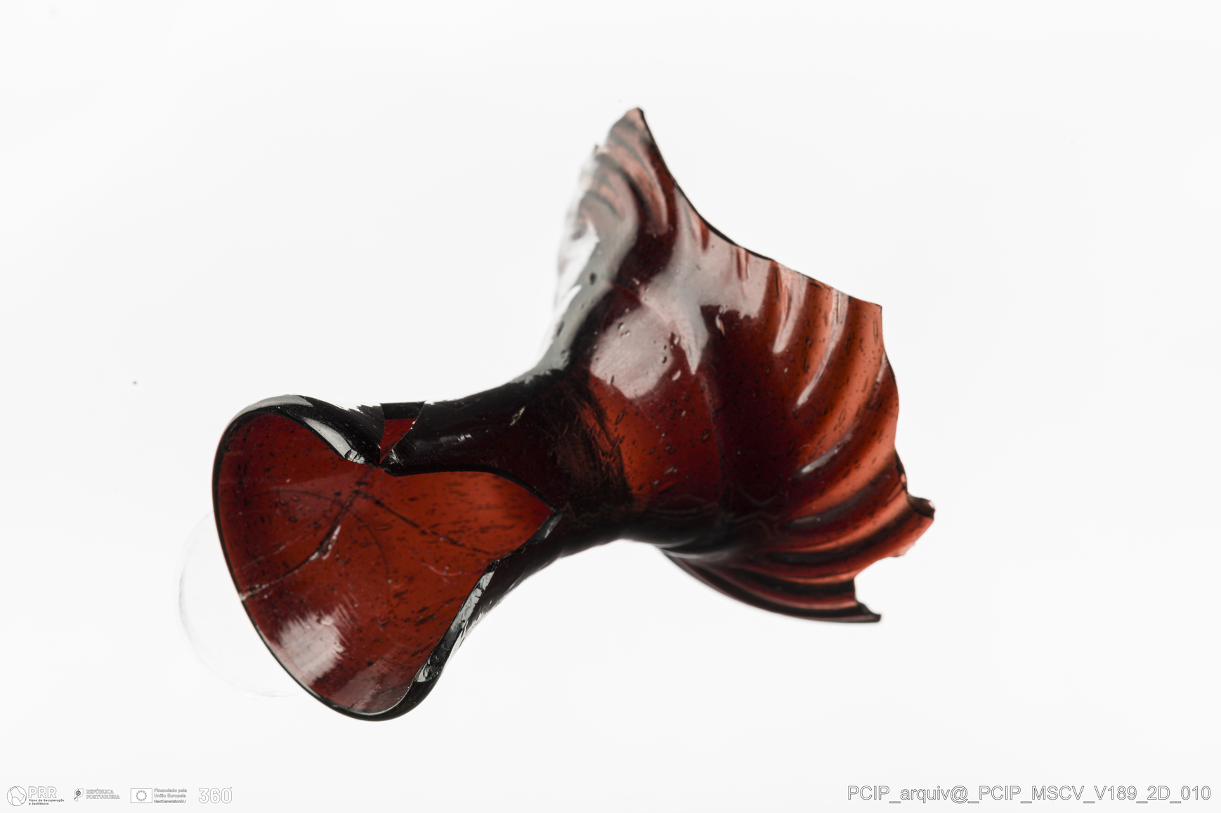 Matéria/Técnica: Vidro; Cronologia: Século XVII; Autoria: Desconhecida; Dimensões: Diâmetro bordo: 31mm.