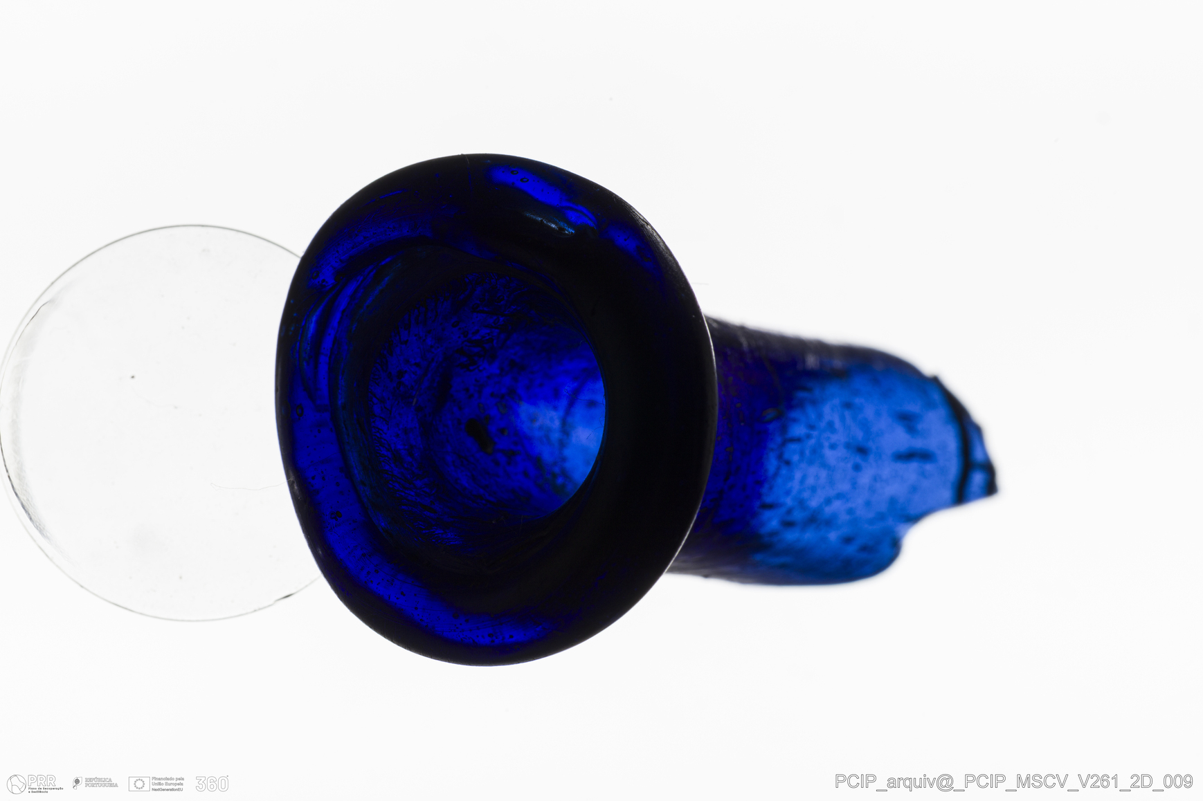 Matéria/Técnica: Vidro; Cronologia: Século XVII; Autoria: Desconhecida; Dimensões: Diâmetro bordo: 24mm.