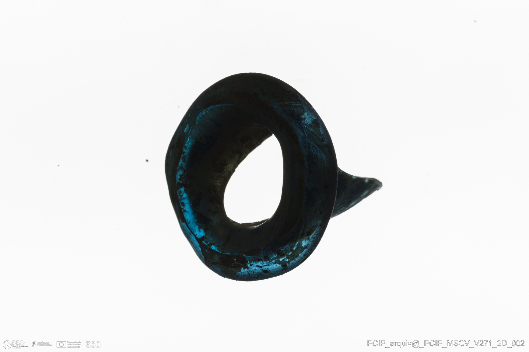 Matéria/Técnica: Vidro; Cronologia: Século XVII; Autoria: Desconhecida; Dimensões: Diâmetro bordo: 27mm.