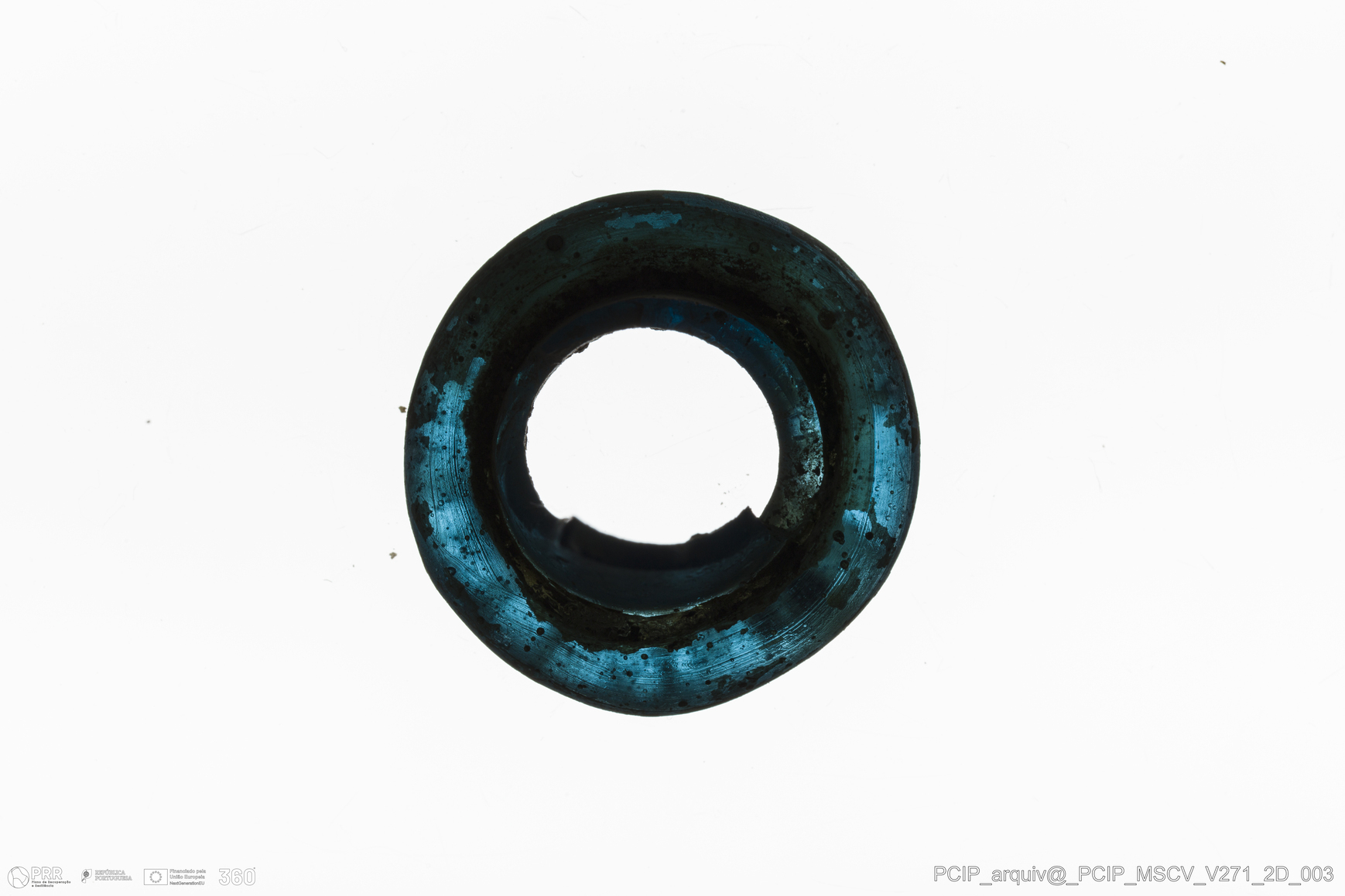 Matéria/Técnica: Vidro; Cronologia: Século XVII; Autoria: Desconhecida; Dimensões: Diâmetro bordo: 27mm.