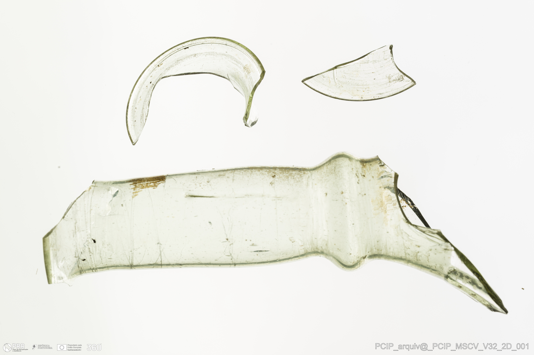Matéria/Técnica: Vidro; Cronologia: Século XVII; Autoria: Desconhecida; Dimensões: Diâmetro Bordo: 34mm.