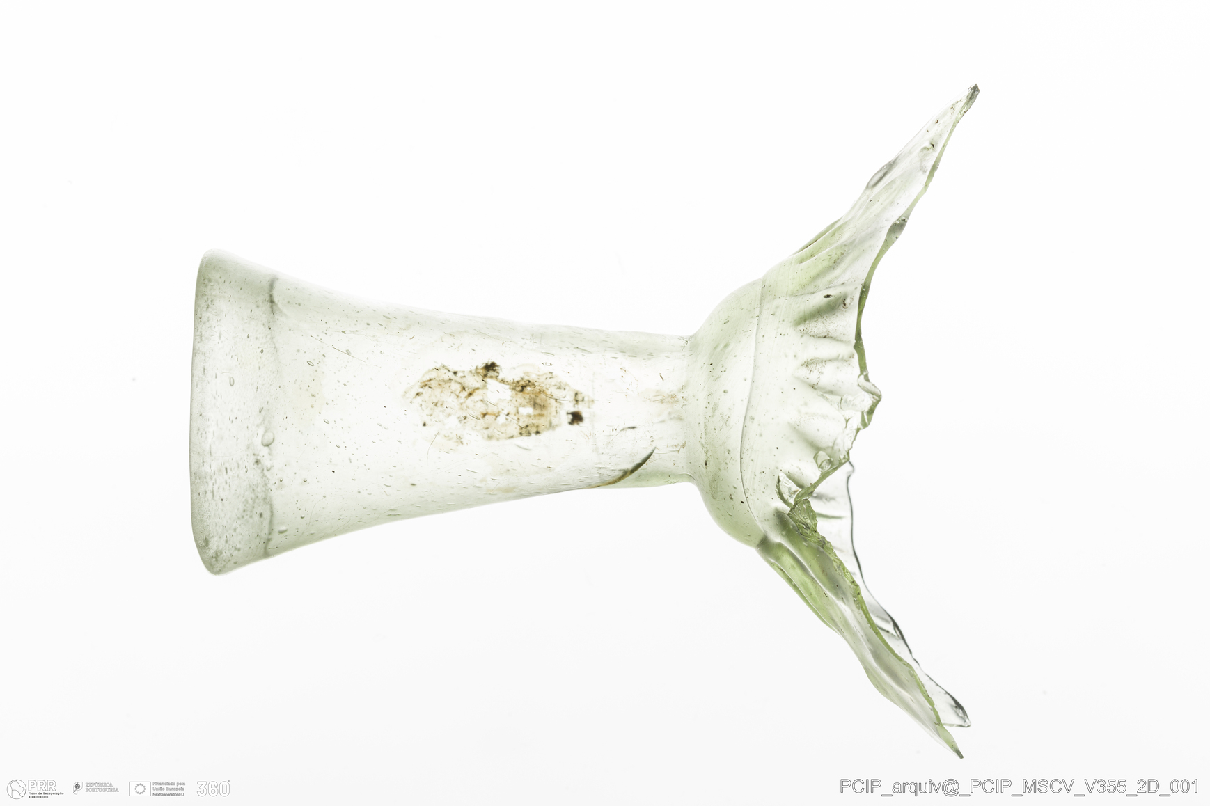 Matéria/Técnica: Vidro; Cronologia: Século XVII; Autoria: Desconhecida; Dimensões: Diâmetro bordo: 36mm.