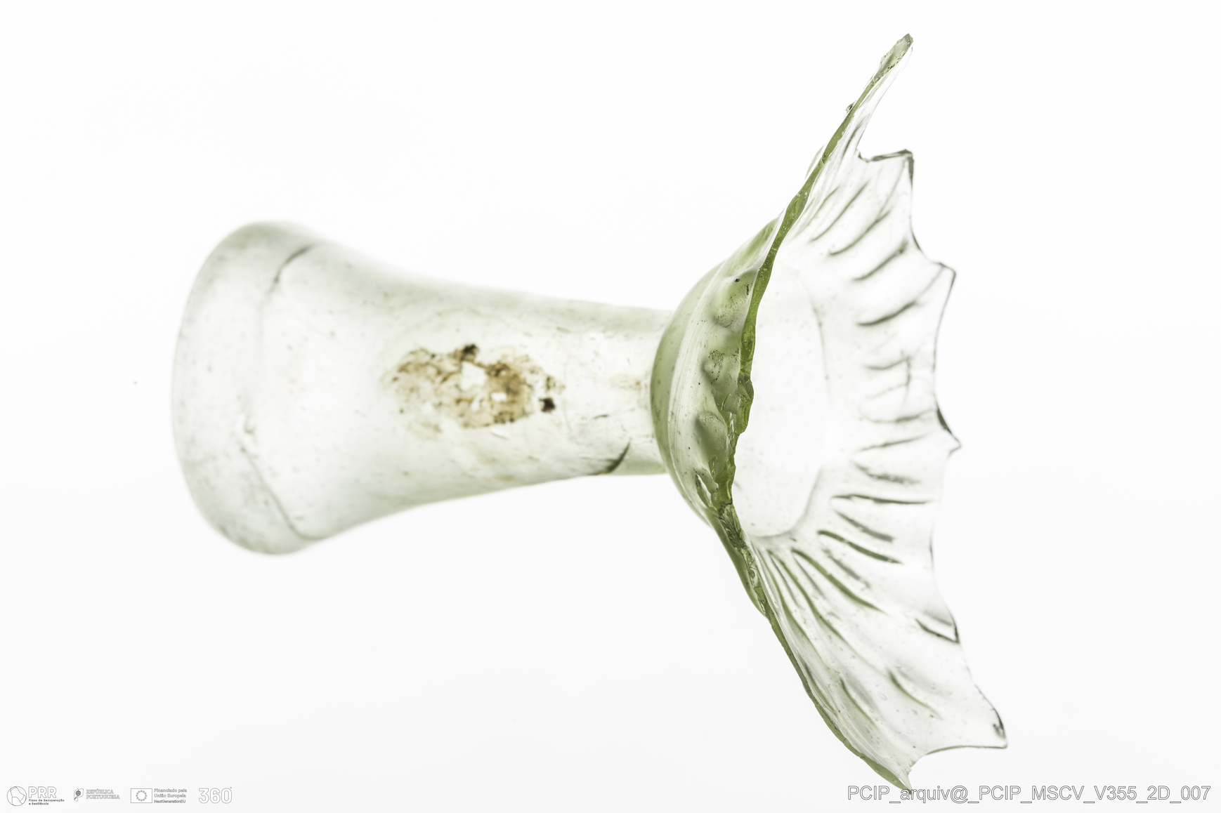 Matéria/Técnica: Vidro; Cronologia: Século XVII; Autoria: Desconhecida; Dimensões: Diâmetro bordo: 36mm.