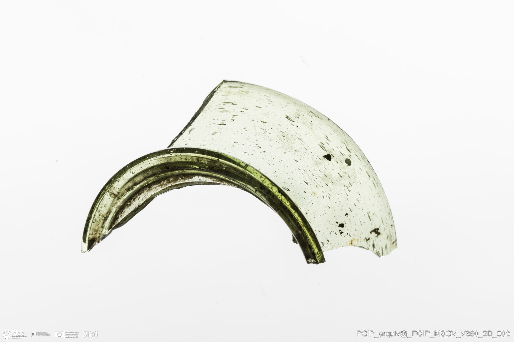 Matéria/Técnica: Vidro; Cronologia: Século XVII; Autoria: Desconhecida; Dimensões: Diâmetro bordo: 60mm.