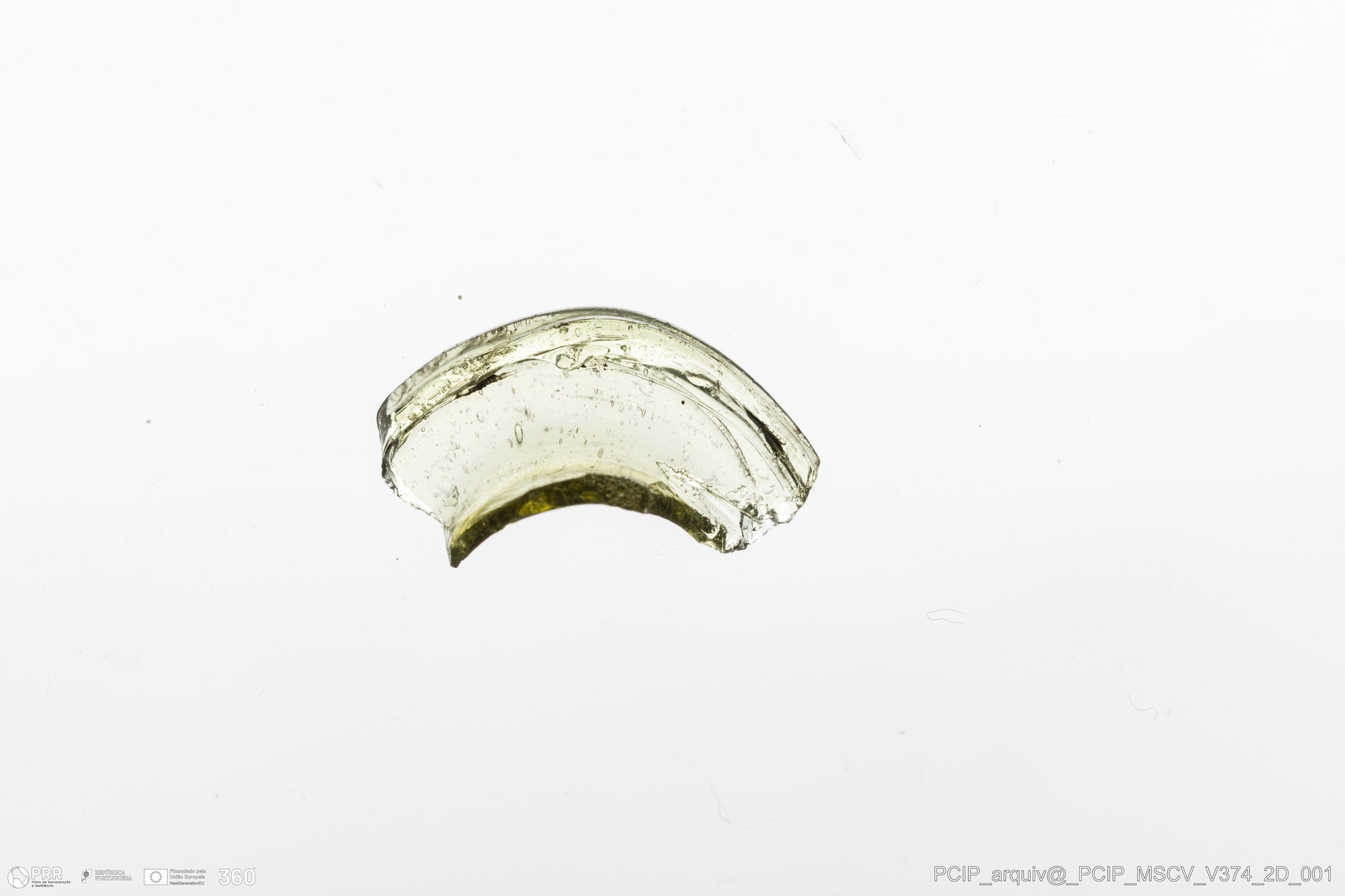Matéria/Técnica: Vidro; Cronologia: Século XVII; Autoria: Desconhecida; Dimensões: Diâmetro bordo: 30mm.