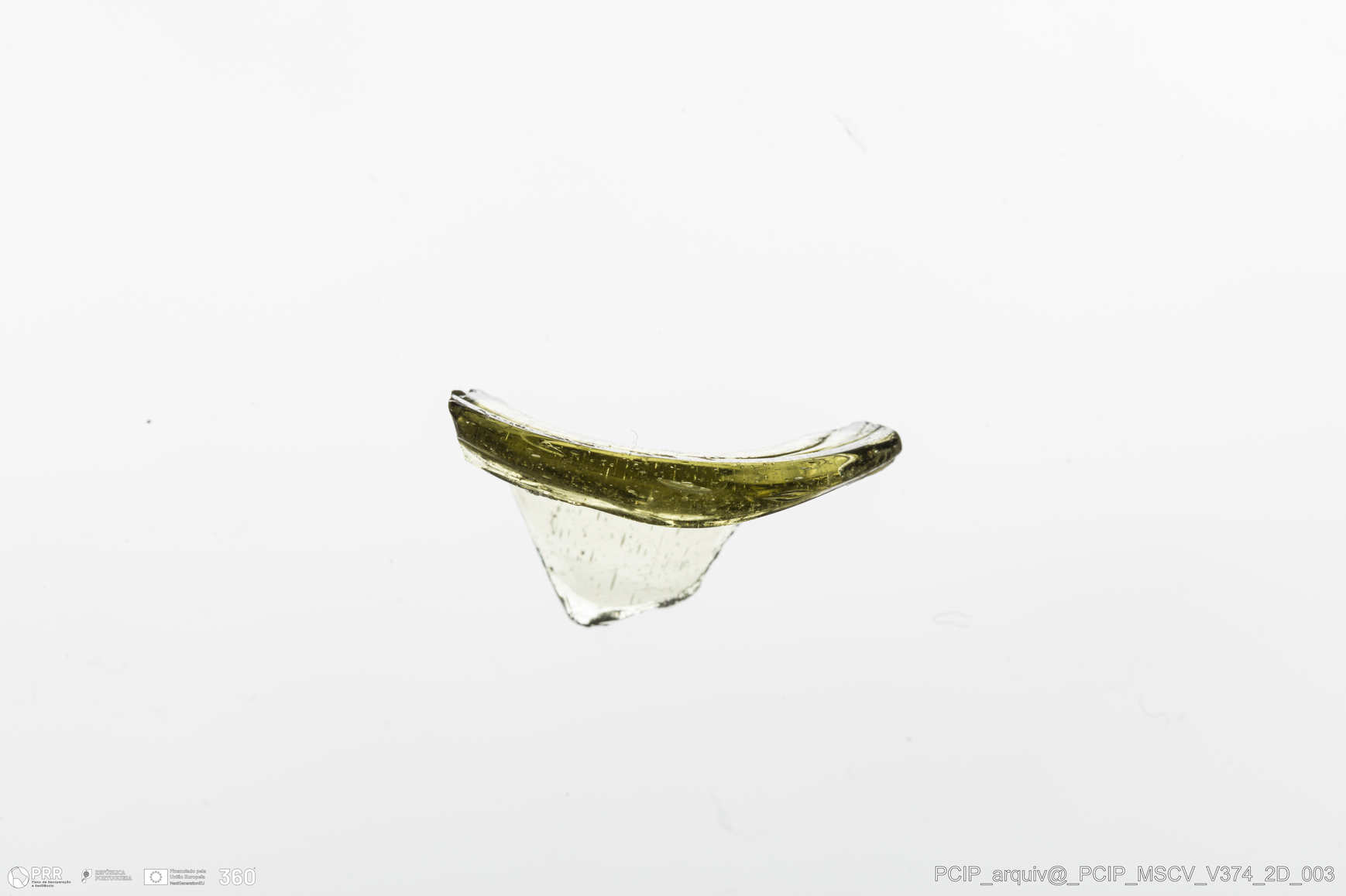 Matéria/Técnica: Vidro; Cronologia: Século XVII; Autoria: Desconhecida; Dimensões: Diâmetro bordo: 30mm.