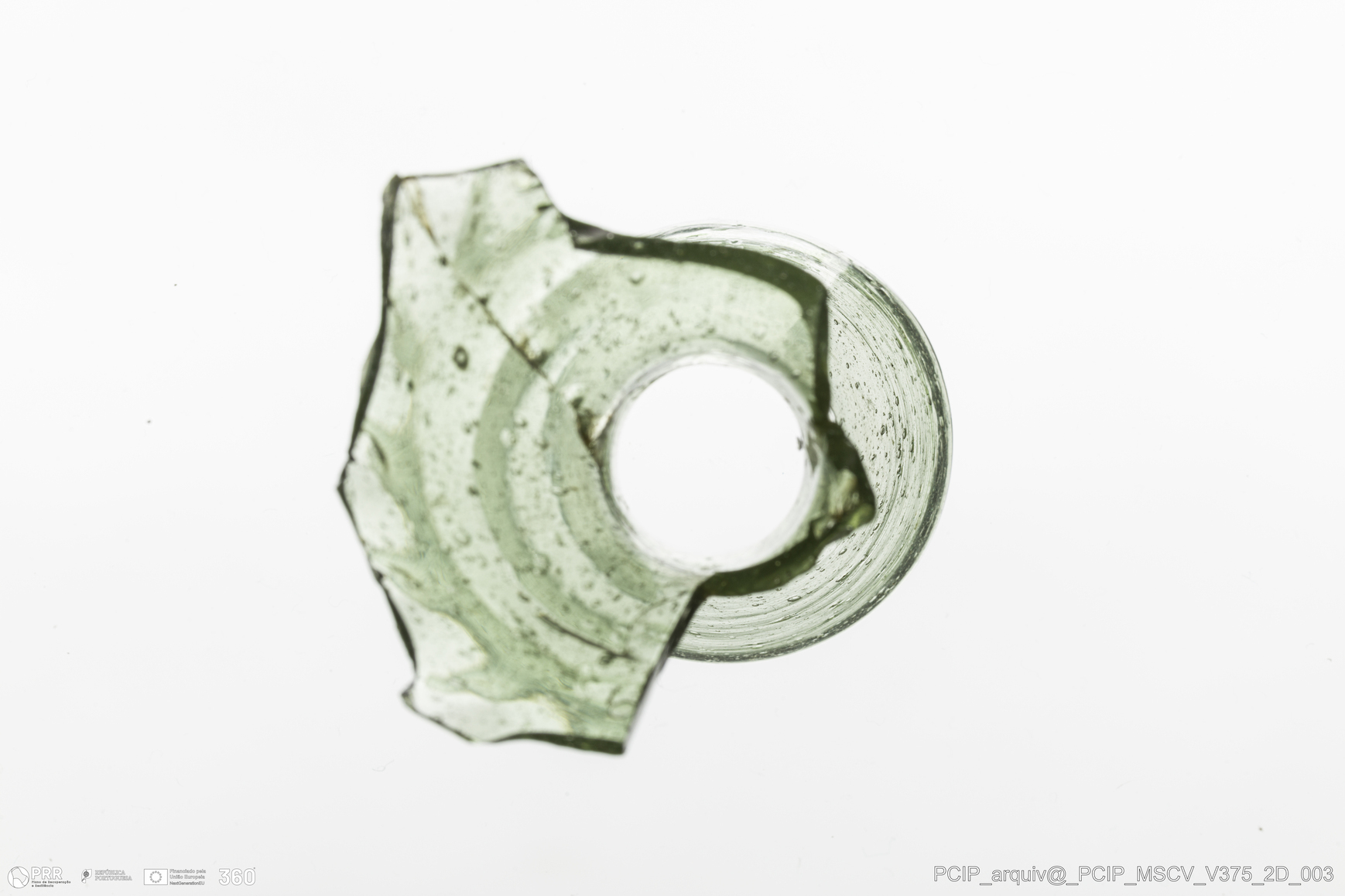 Matéria/Técnica: Vidro; Cronologia: Século XVII; Autoria: Desconhecida; Dimensões: Diâmetro bordo: 38mm.