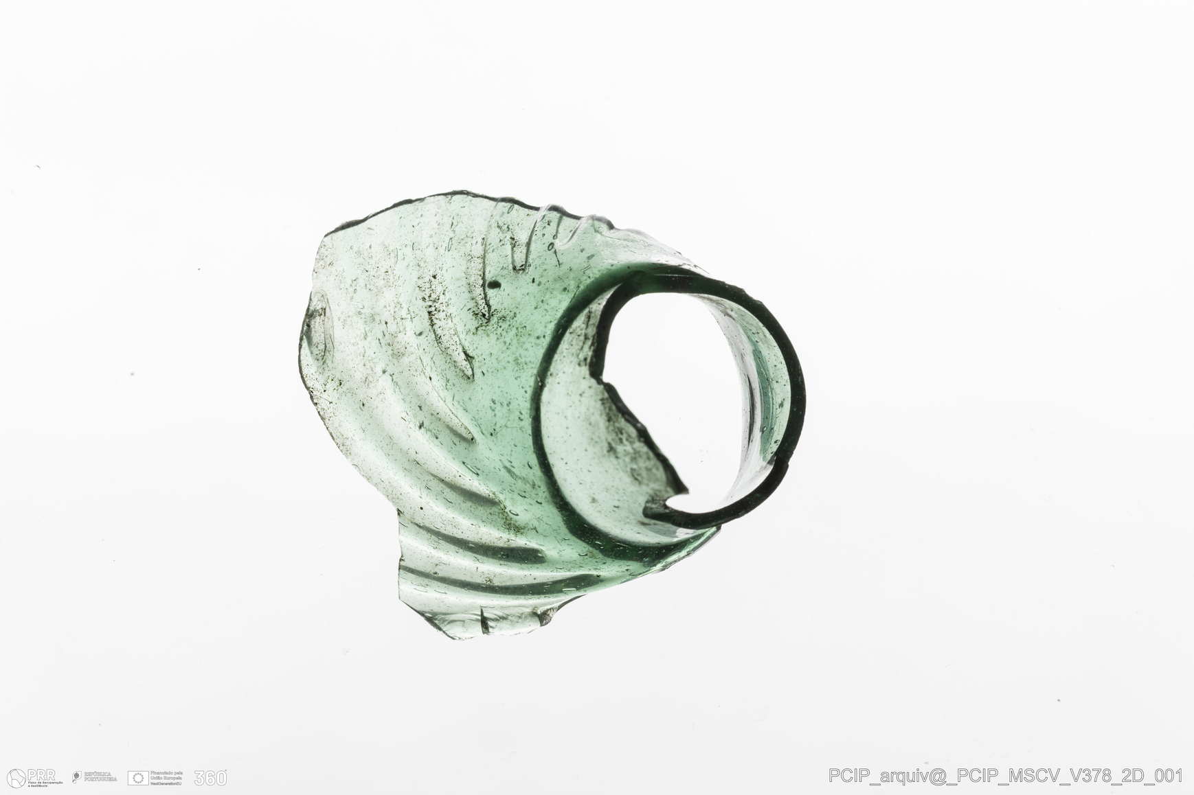 Matéria/Técnica: Vidro; Cronologia: Século XVII; Autoria: Desconhecida; Dimensões: Largura: 30mm; Altura: 60mm.