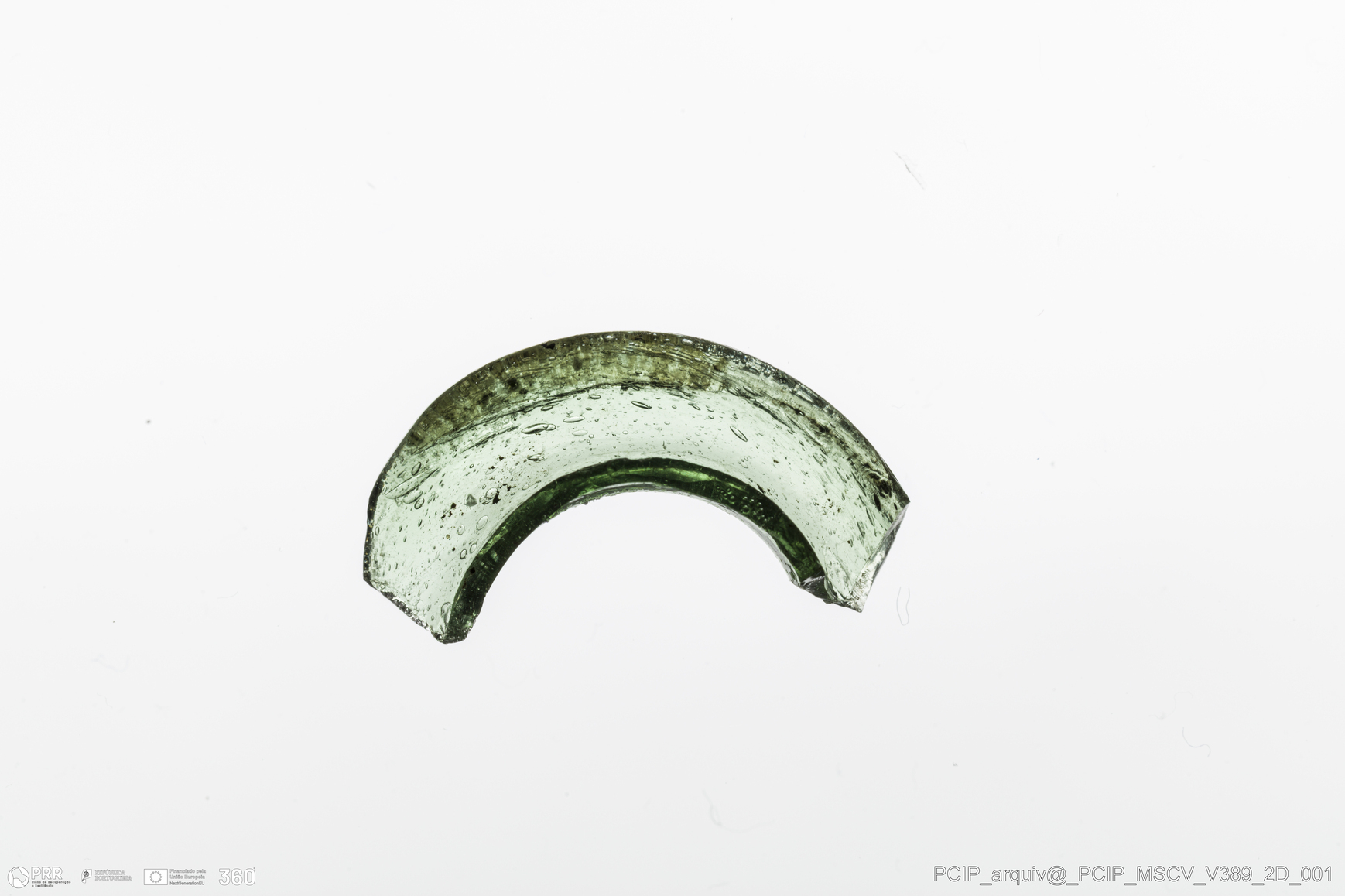 Matéria/Técnica: Vidro; Cronologia: Século XVII; Autoria: Desconhecida; Dimensões: Diâmetro bordo: 30mm.