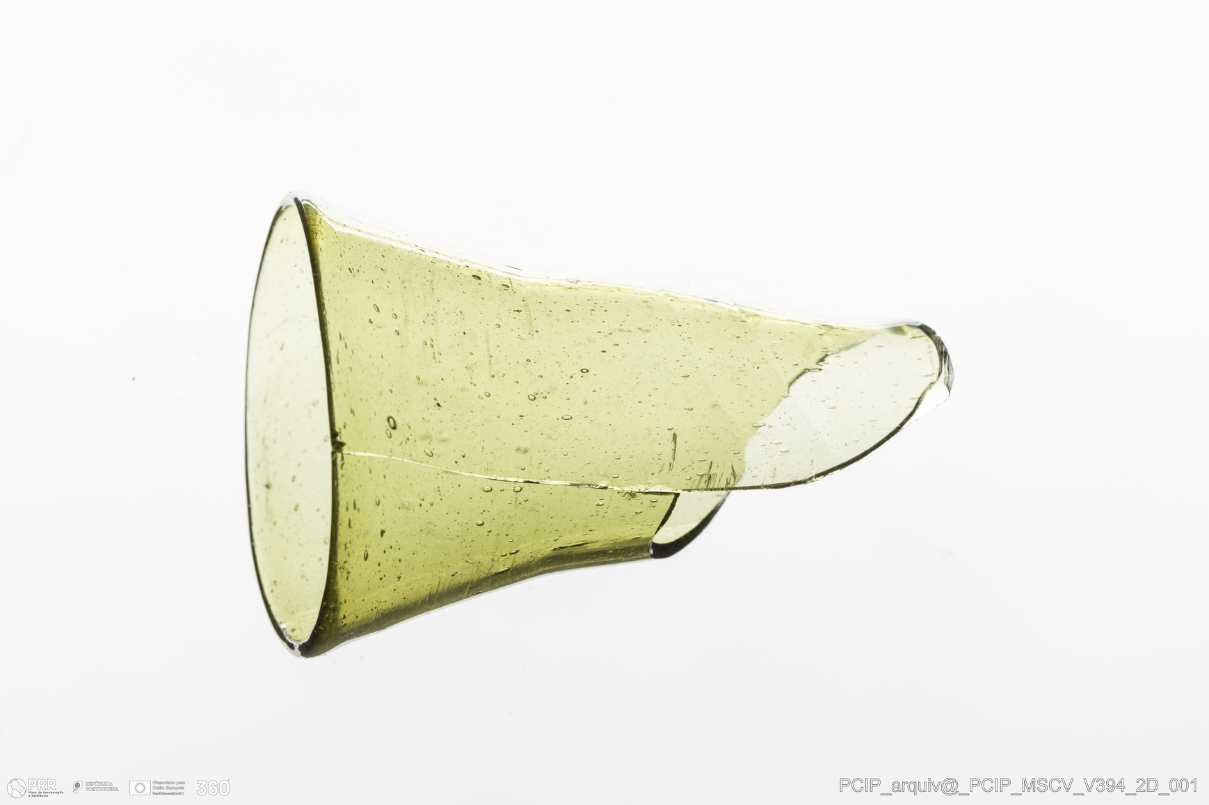Matéria/Técnica: Vidro; Cronologia: Século XVII; Autoria: Desconhecida; Dimensões: Diâmetro bordo: 38mm.