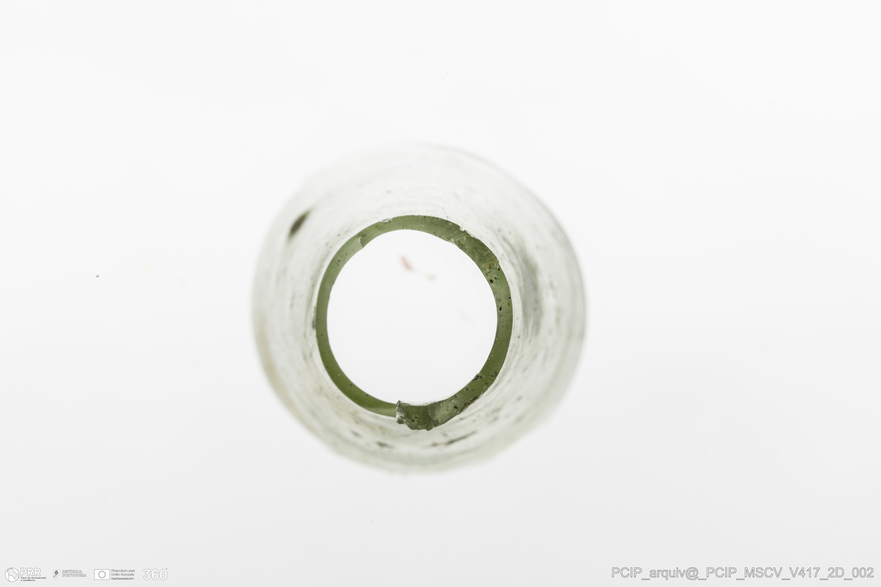 Matéria/Técnica: Vidro; Cronologia: Século XVII; Autoria: Desconhecida; Dimensões: Diâmetro bordo: 35mm.