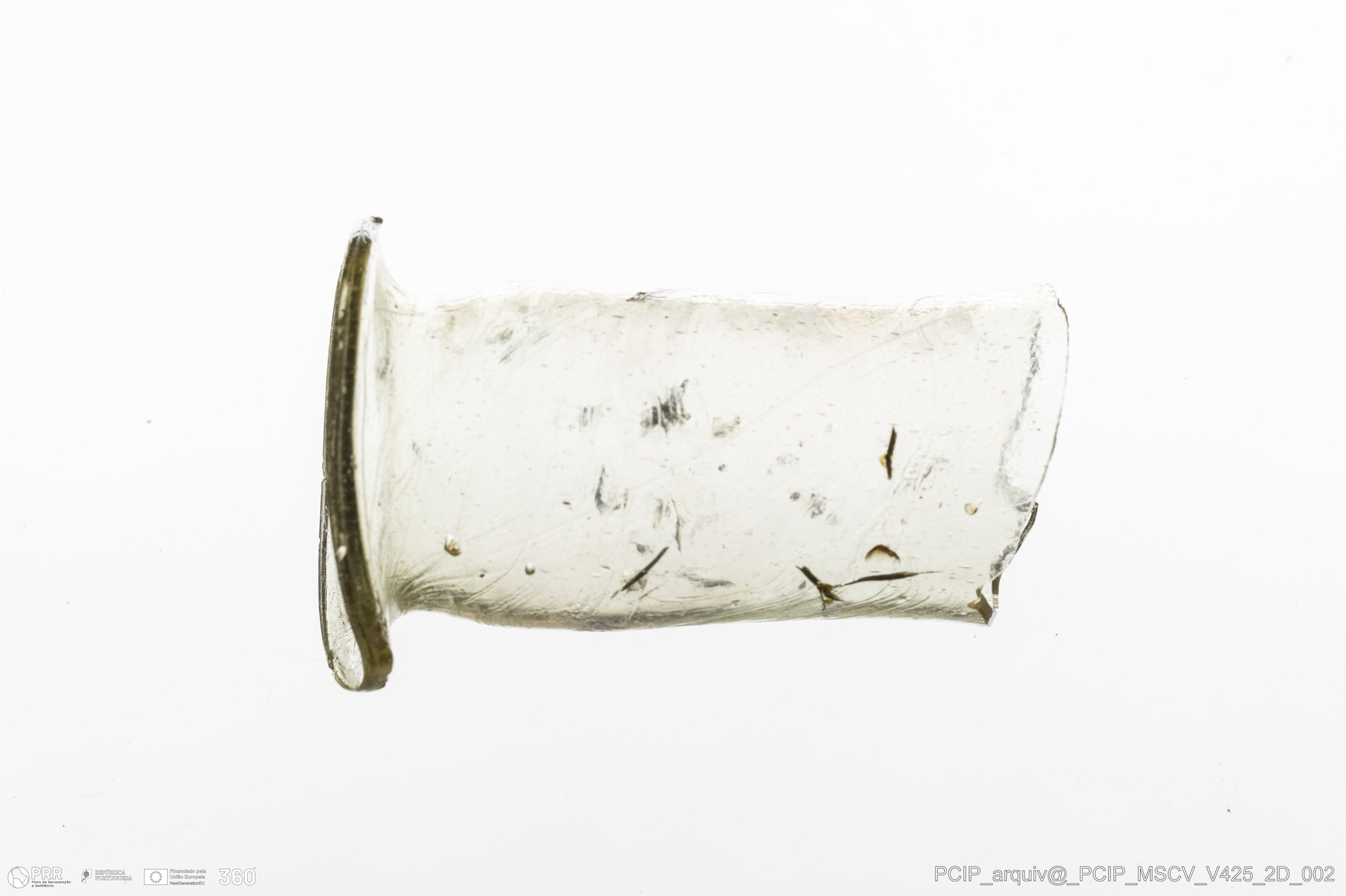 Matéria/Técnica: Vidro; Cronologia: Século XVII; Autoria: Desconhecida; Dimensões: Diâmetro bordo: 40mm.
