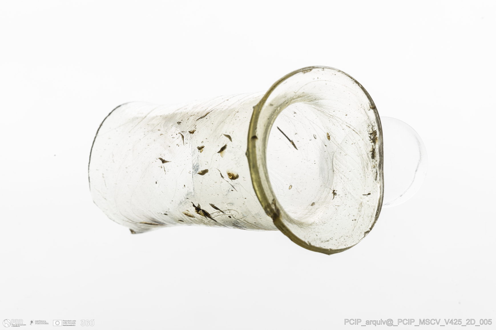 Matéria/Técnica: Vidro; Cronologia: Século XVII; Autoria: Desconhecida; Dimensões: Diâmetro bordo: 40mm.