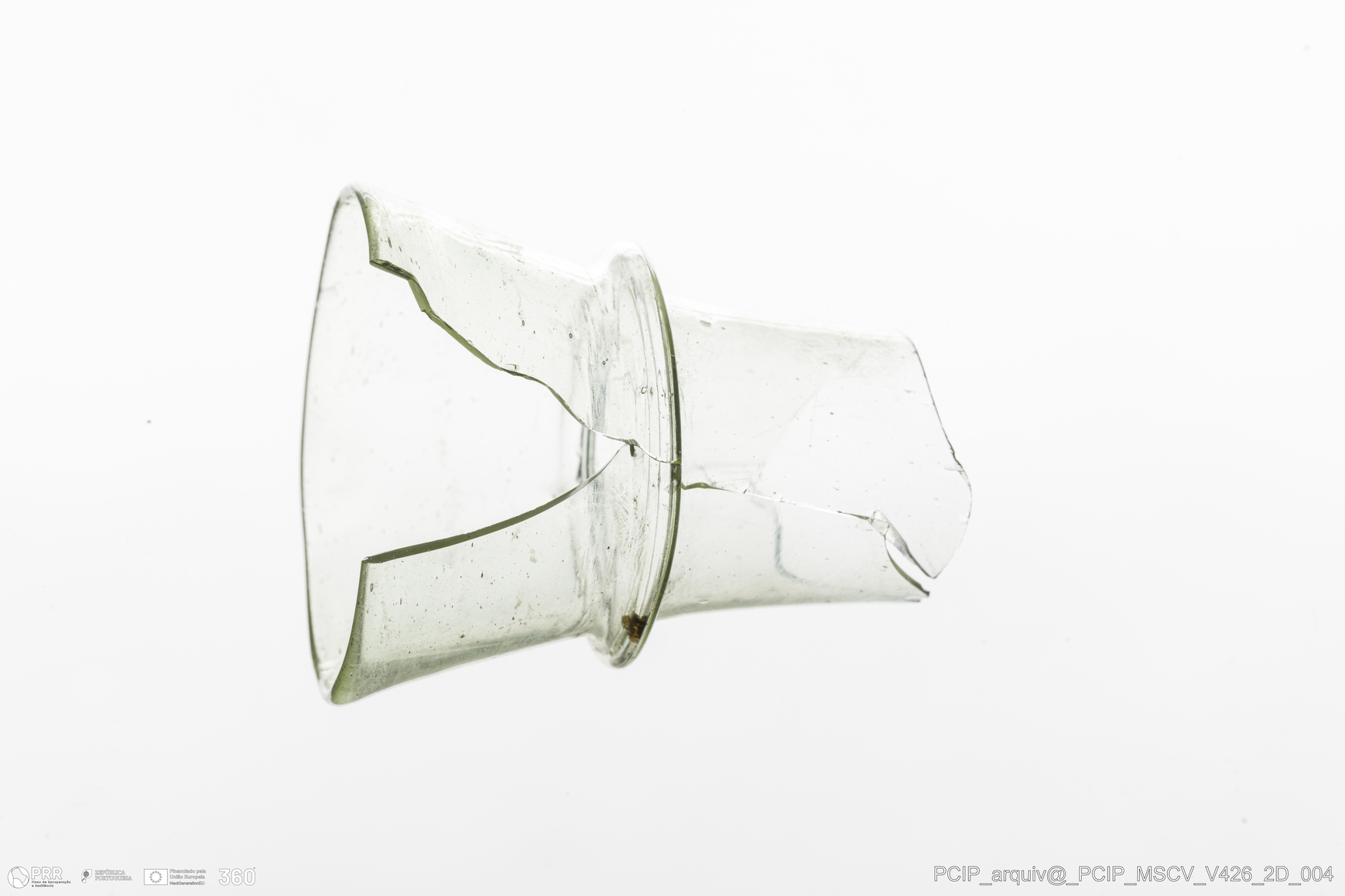 Matéria/Técnica: Vidro; Cronologia: Século XVII; Autoria: Desconhecida; Dimensões: Diâmetro bordo: 44mm.