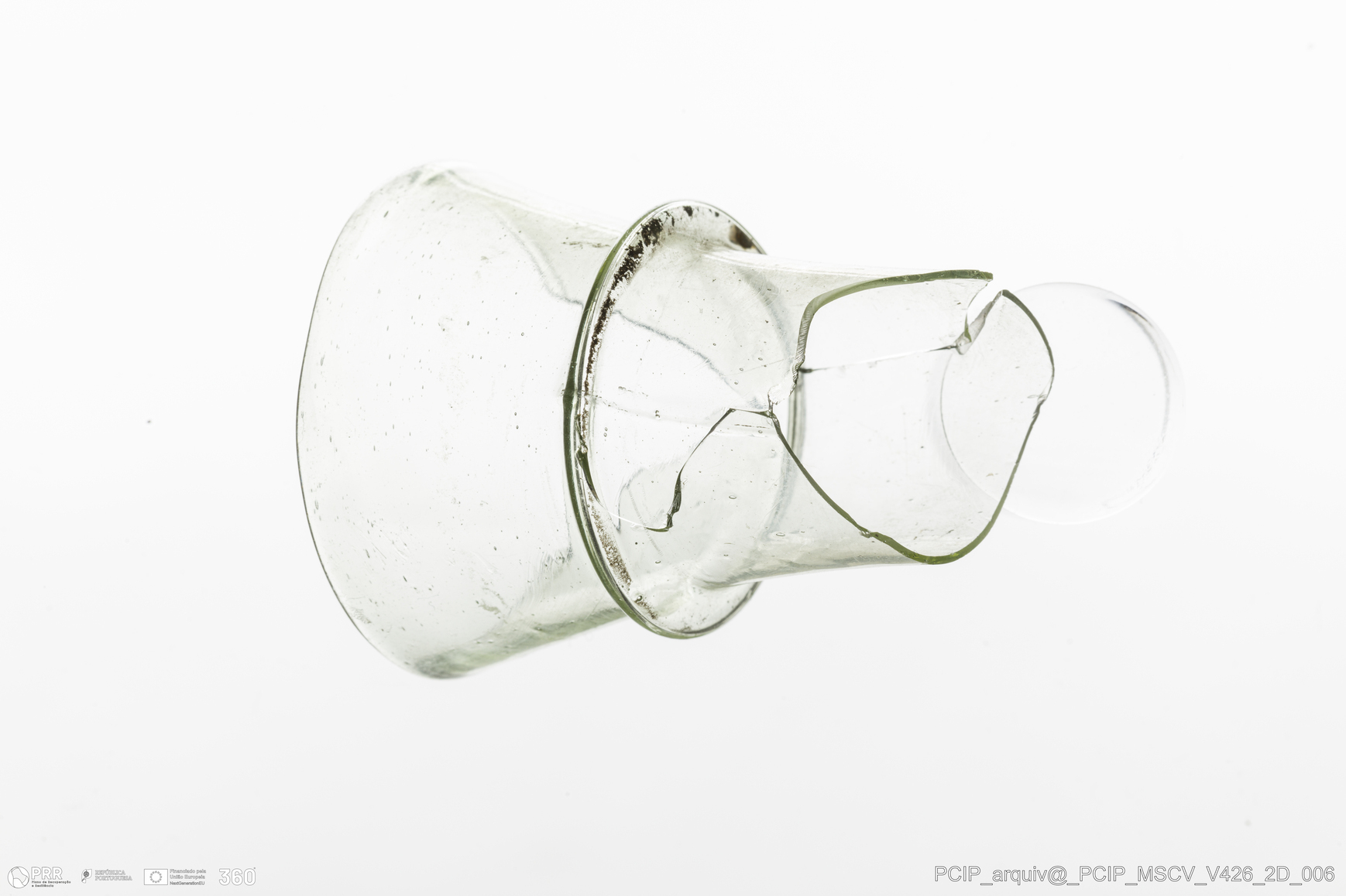 Matéria/Técnica: Vidro; Cronologia: Século XVII; Autoria: Desconhecida; Dimensões: Diâmetro bordo: 44mm.
