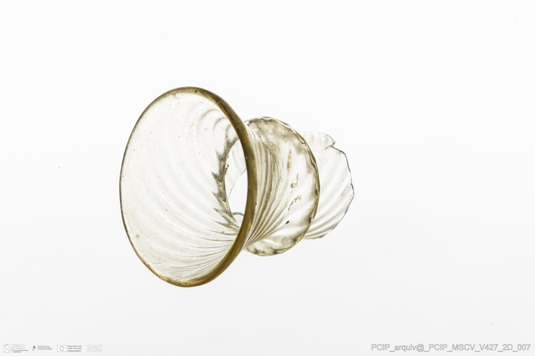 Matéria/Técnica: Vidro; Cronologia: Século XVII; Autoria: Desconhecida; Dimensões: Diâmetro bordo: 43mm.