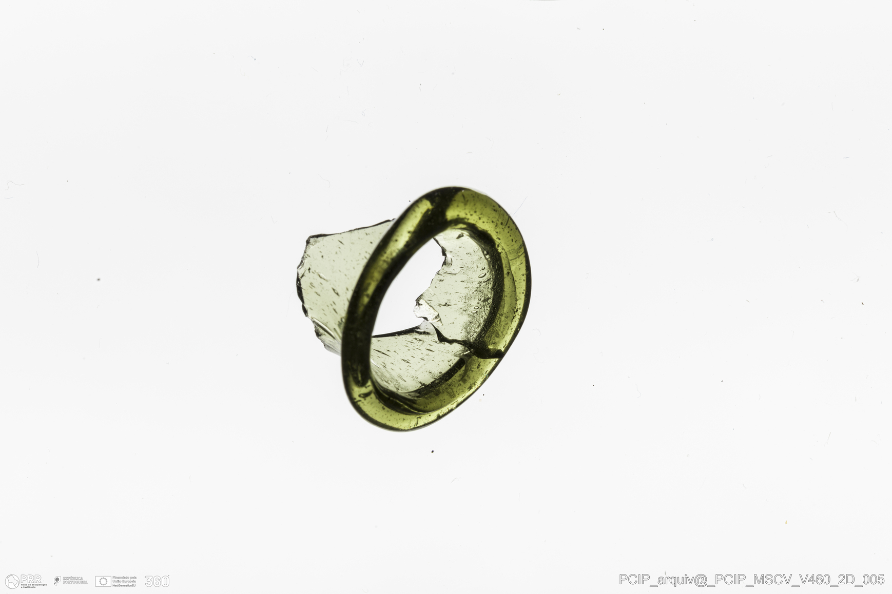 Matéria/Técnica: Vidro; Cronologia: Século XVII; Autoria: Desconhecida; Dimensões: Diâmetro Bordo: 21mm.