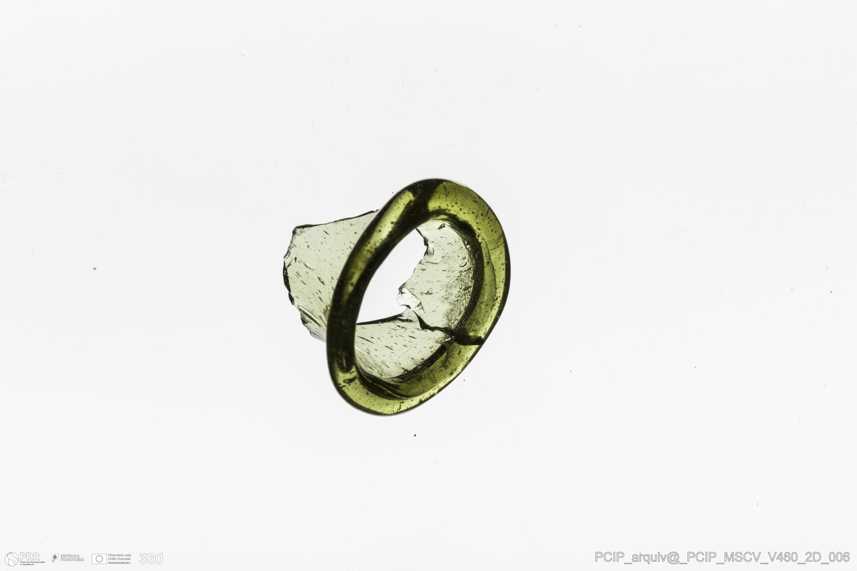 Matéria/Técnica: Vidro; Cronologia: Século XVII; Autoria: Desconhecida; Dimensões: Diâmetro Bordo: 21mm.