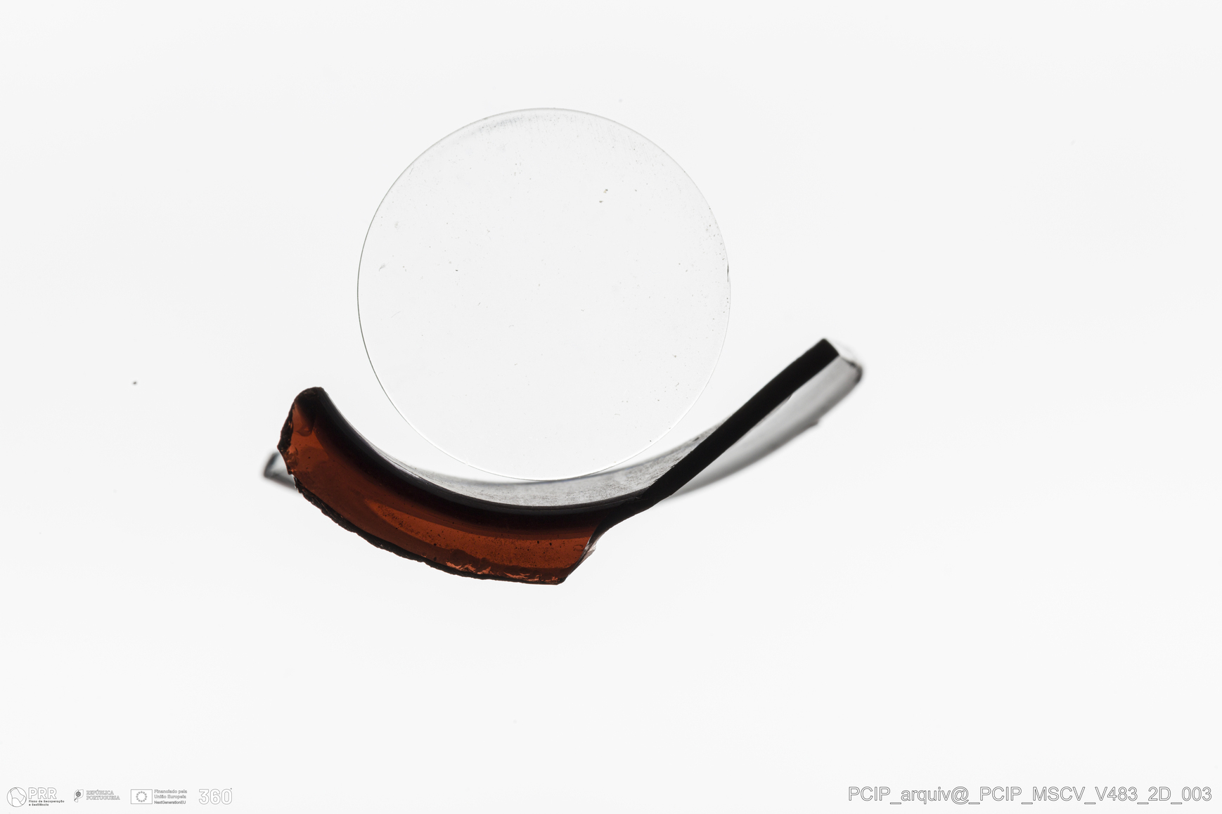 Matéria/Técnica: Vidro; Cronologia: Século XVII; Autoria: Desconhecida; Dimensões: Diâmetro Bordo: 60mm.