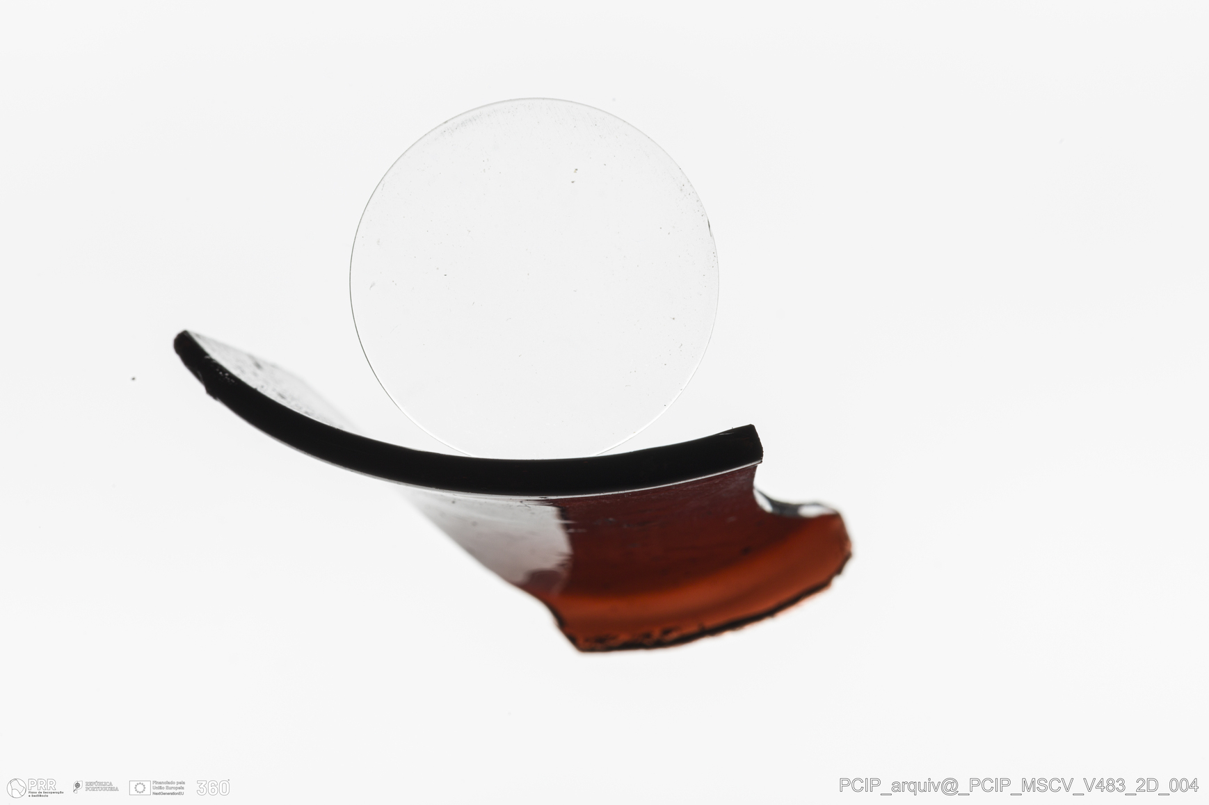 Matéria/Técnica: Vidro; Cronologia: Século XVII; Autoria: Desconhecida; Dimensões: Diâmetro Bordo: 60mm.