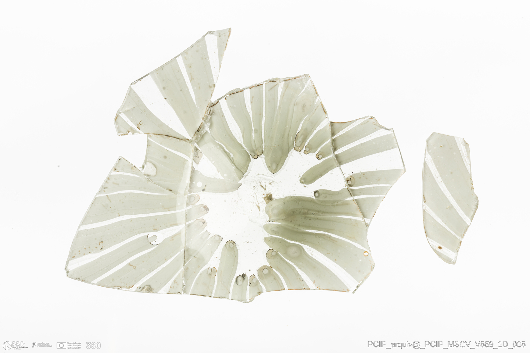 Matéria/Técnica: Vidro; Cronologia: Século XVII; Autoria: Desconhecida; Dimensões: comprimento: 103mm; Largura: 81mm.