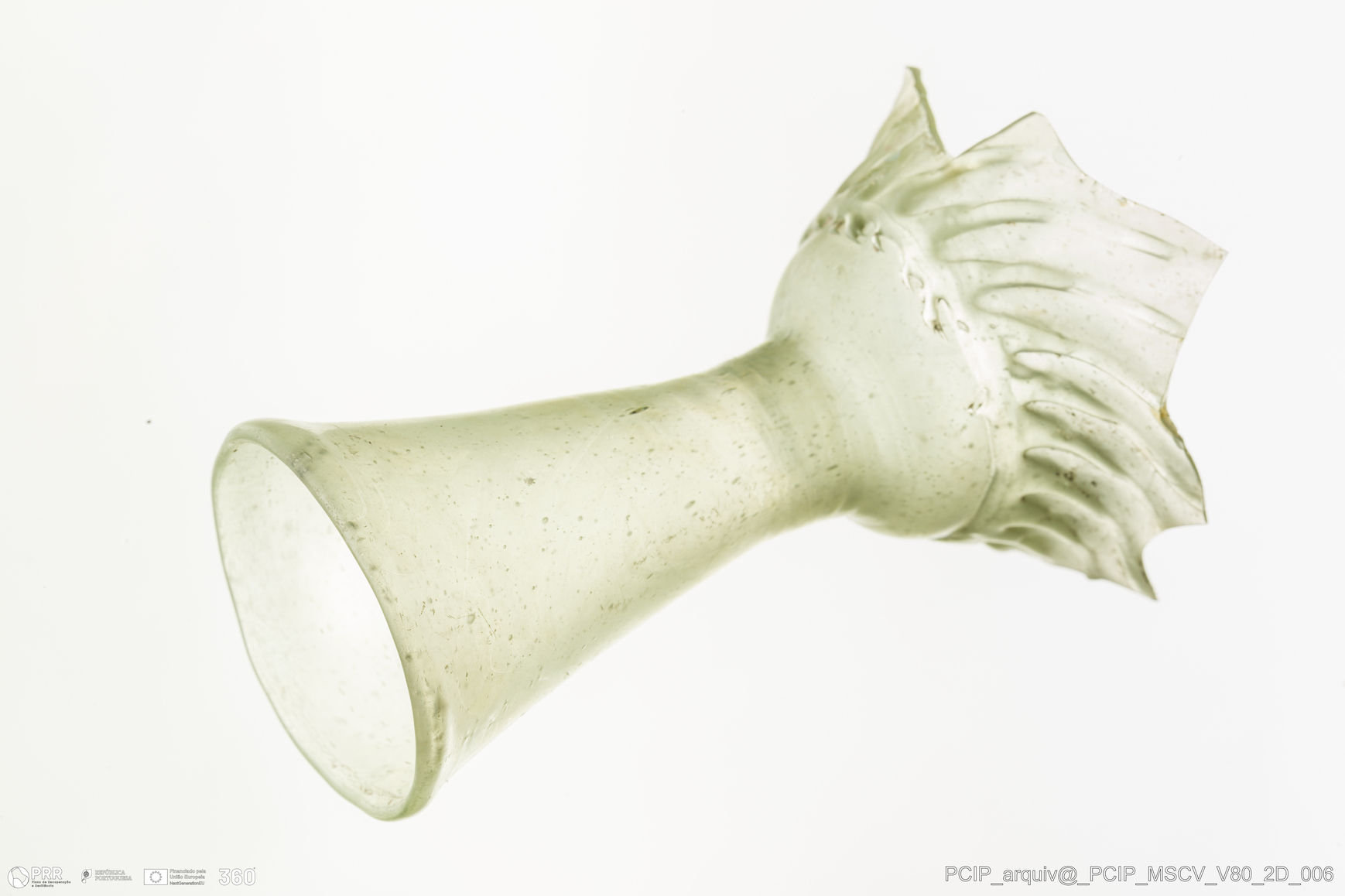 Matéria/Técnica: Vidro; Cronologia: Século XVII; Autoria: Desconhecida; Dimensões: Diâmetro bordo: 37mm.