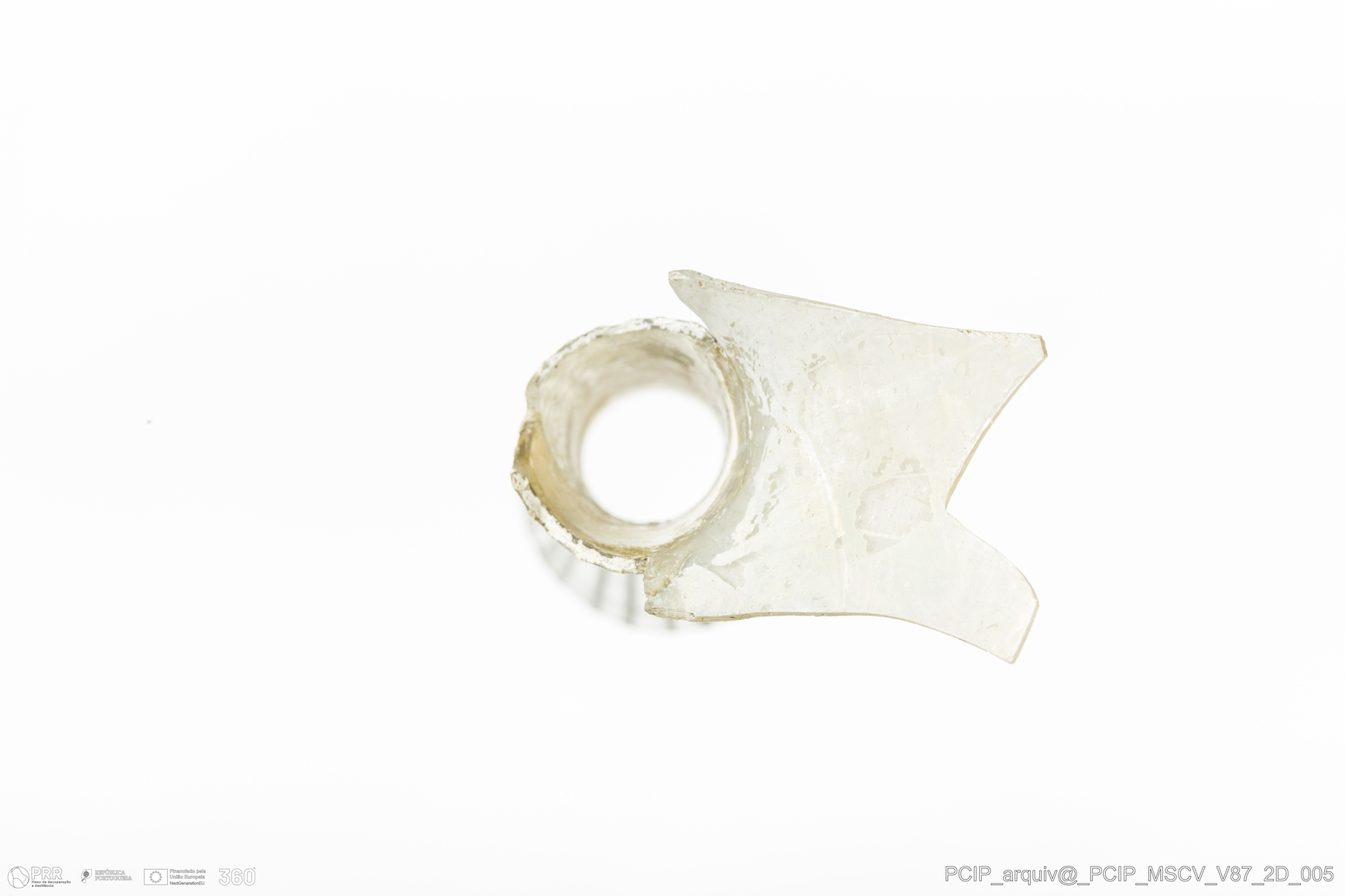 Matéria/Técnica: Vidro; Cronologia: Século XVII; Autoria: Desconhecida; Dimensões: Diâmetro bordo: 34mm.