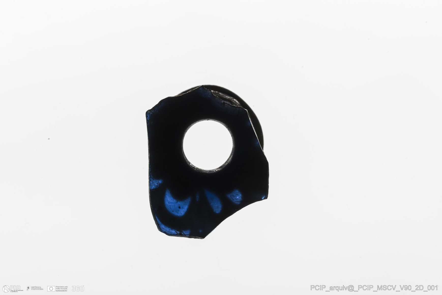 Matéria/Técnica: Vidro; Cronologia: Século XVII; Autoria: Desconhecida; Dimensões: Diâmetro bordo: 21mm.