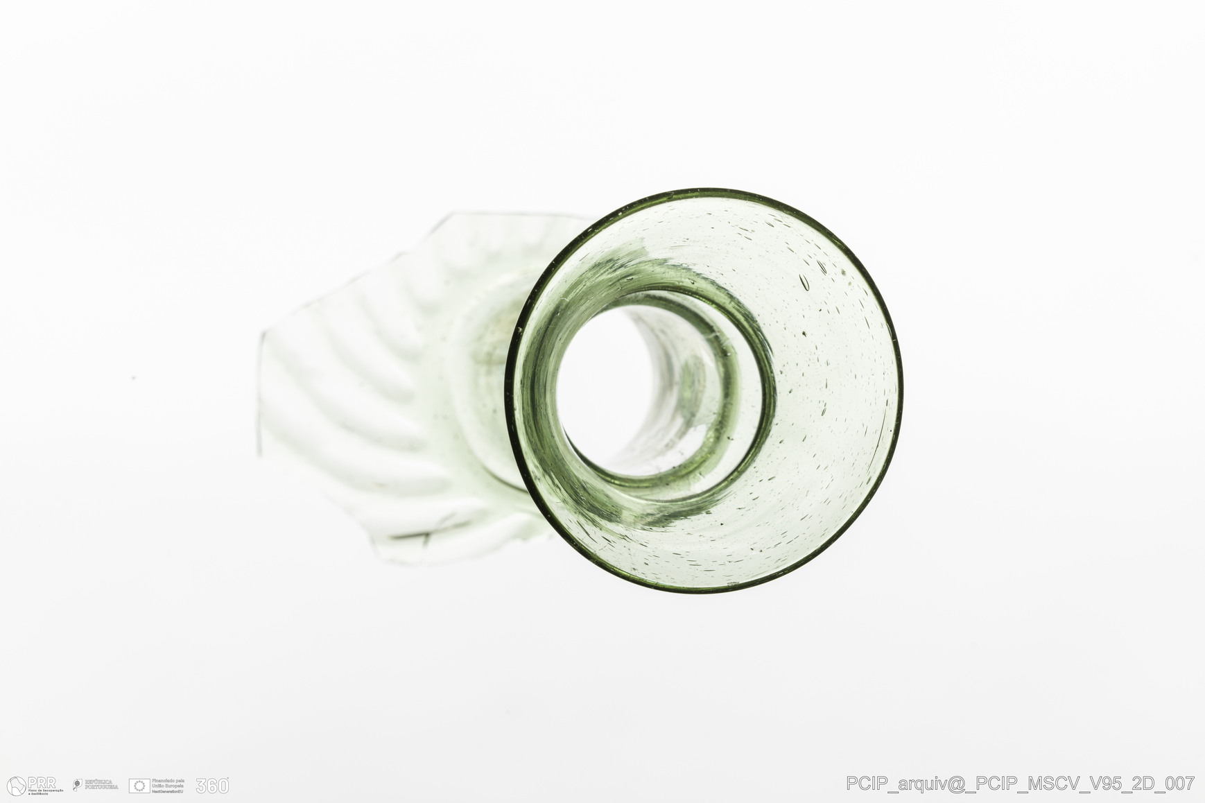 Matéria/Técnica: Vidro; Cronologia: Século XVII; Autoria: Desconhecida; Dimensões: Diâmetro bordo: 47mm.