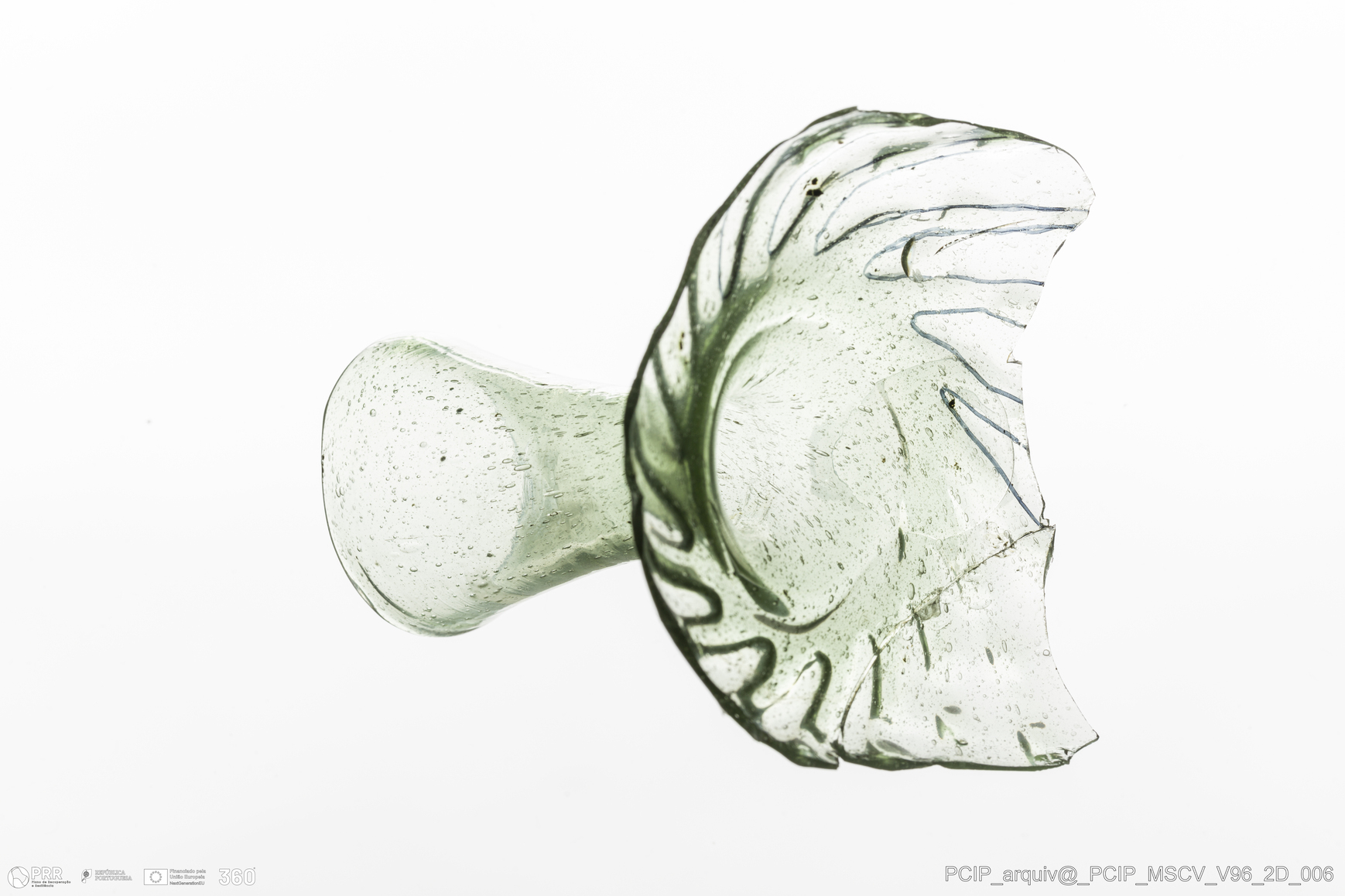 Matéria/Técnica: Vidro; Cronologia: Século XVII; Autoria: Desconhecida; Dimensões: Diâmetro bordo: 37mm.