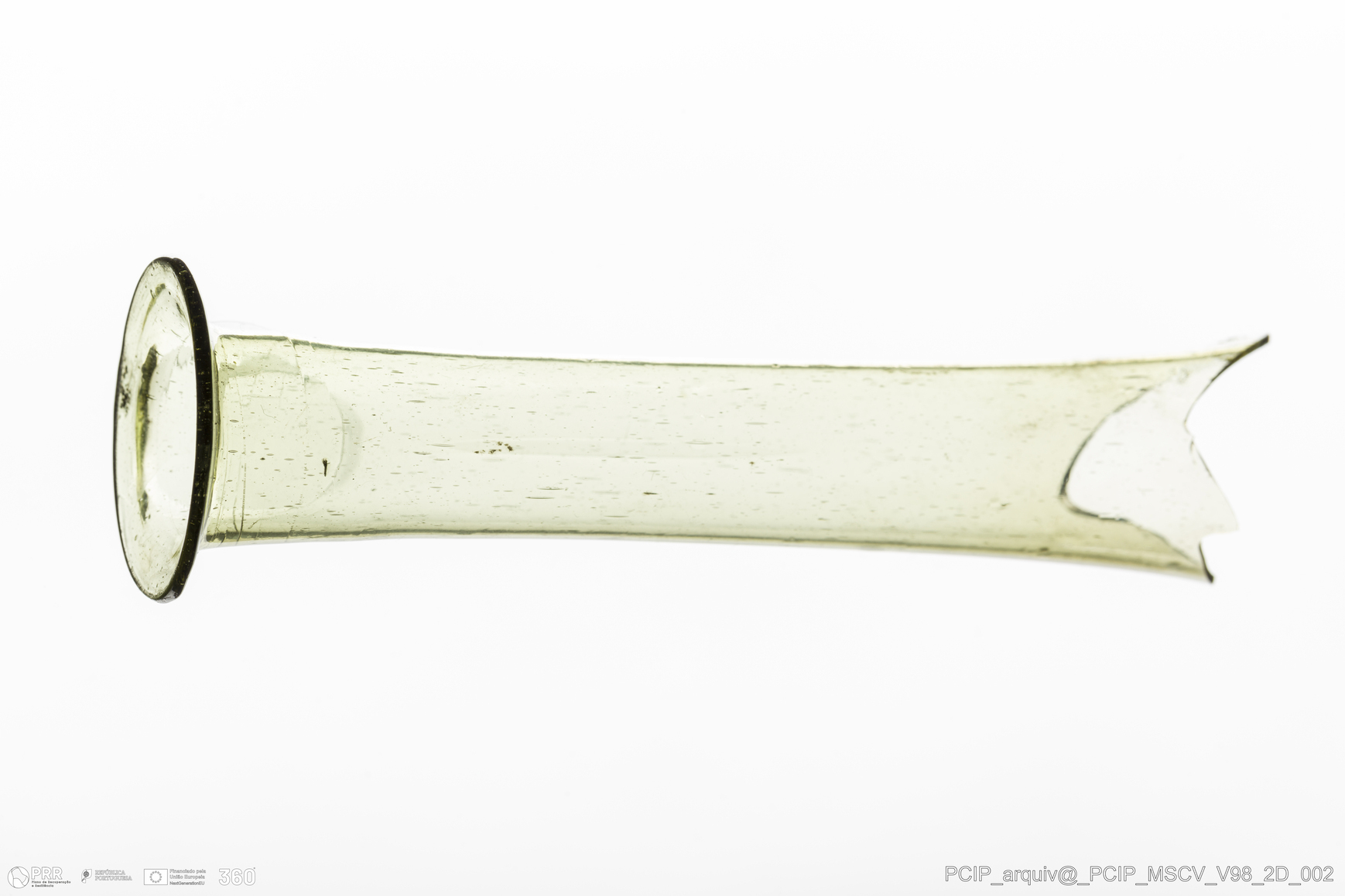 Matéria/Técnica: Vidro; Cronologia: Século XVII; Autoria: Desconhecida; Dimensões: Diâmetro bordo: 30mm.