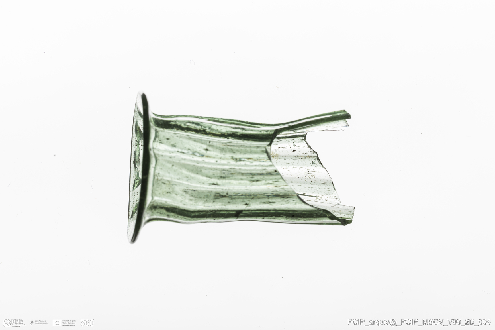 Matéria/Técnica: Vidro; Cronologia: Século XVII; Autoria: Desconhecida; Dimensões: Diâmetro bordo: 33mm.