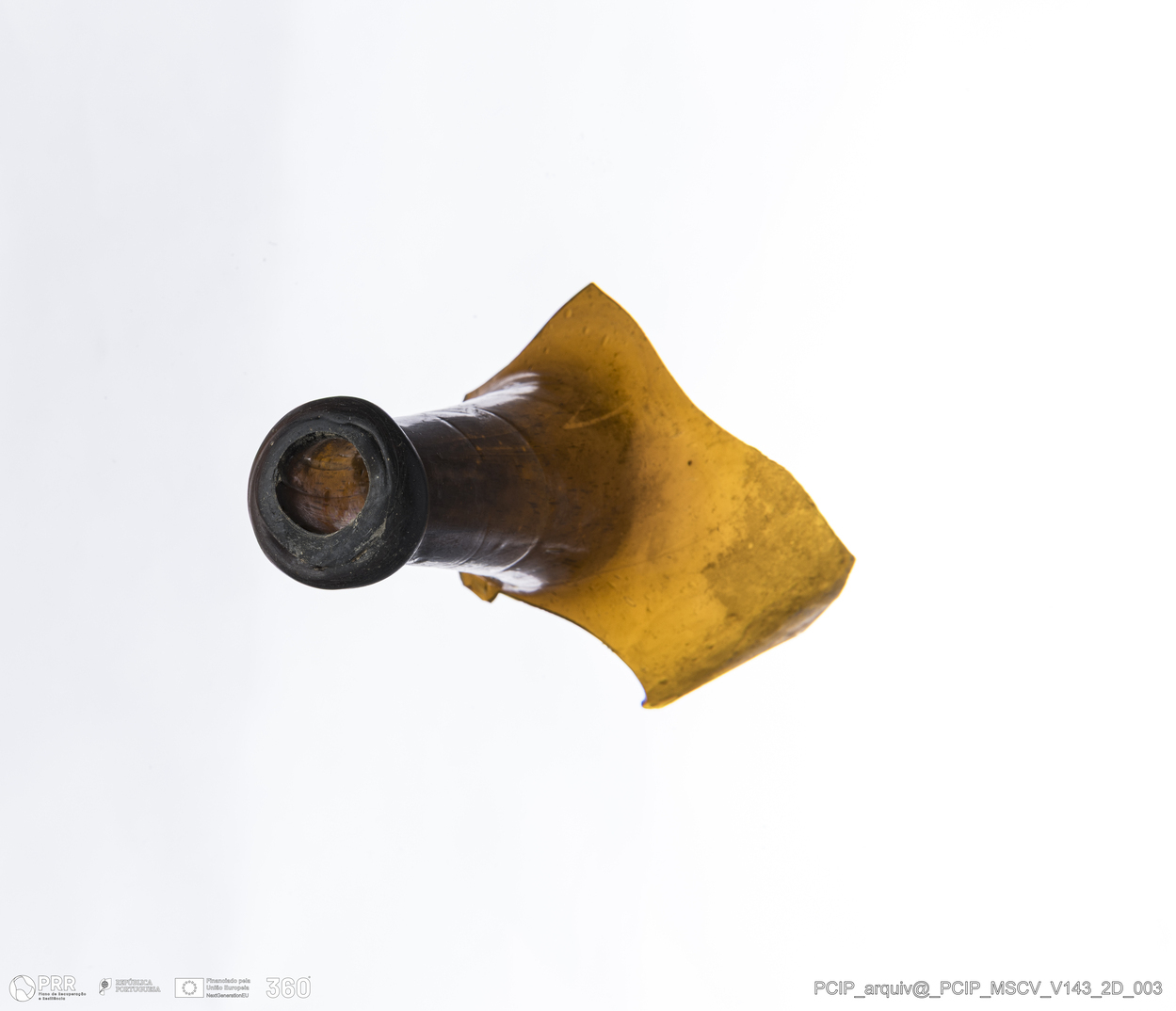 Matéria/Técnica: Vidro; Cronologia: Século XVII; Autoria: Desconhecida; Dimensões: Diâmetro da base: 100mm; Largura: 75mm; Altura: 117mm.