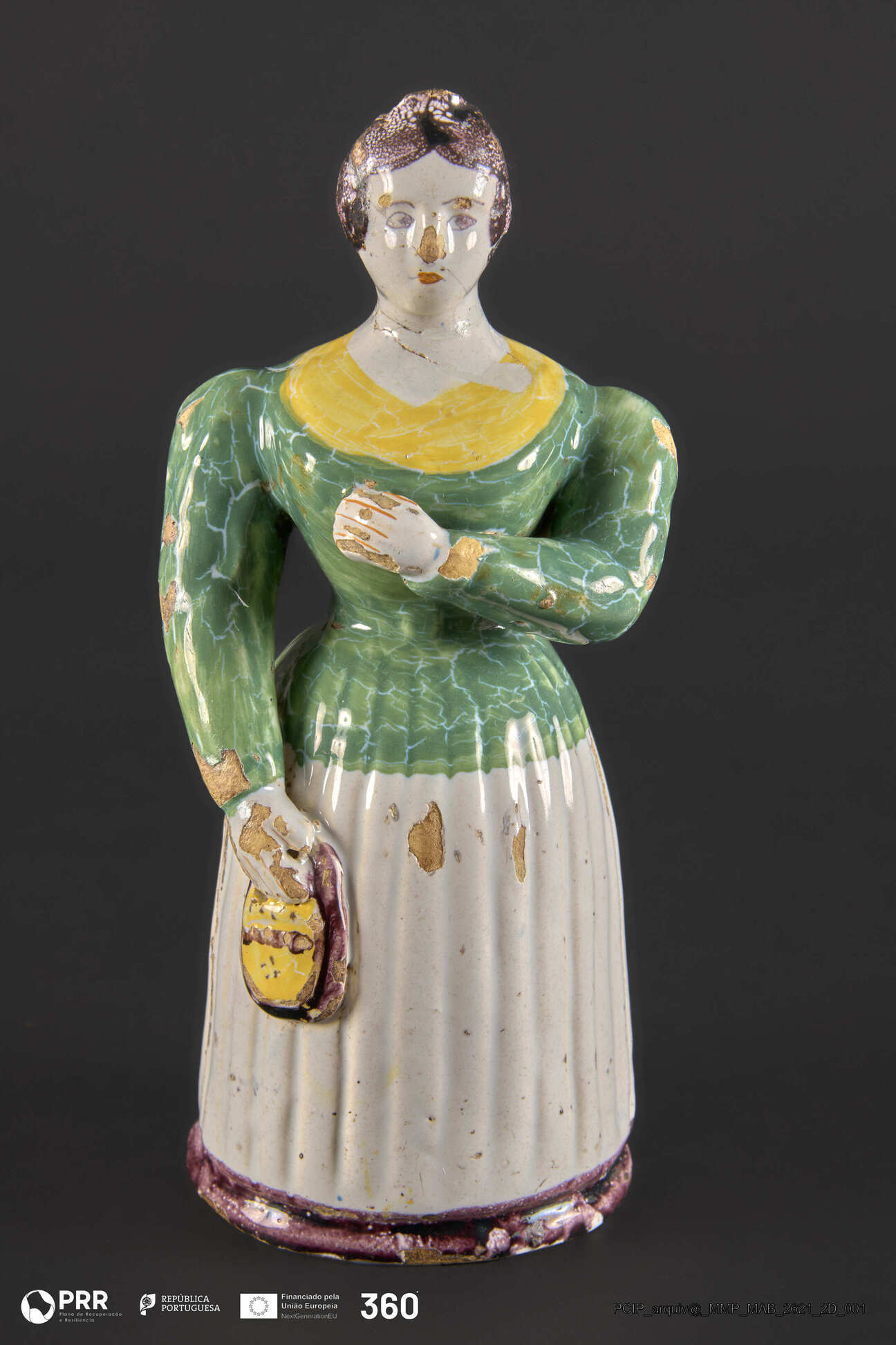 Matéria/Técnica: Faiança moldada, vidrada e policromada; Cronologia: Desconhecida; Autoria: Desconhecida; Dimensões: Desconhecidas.