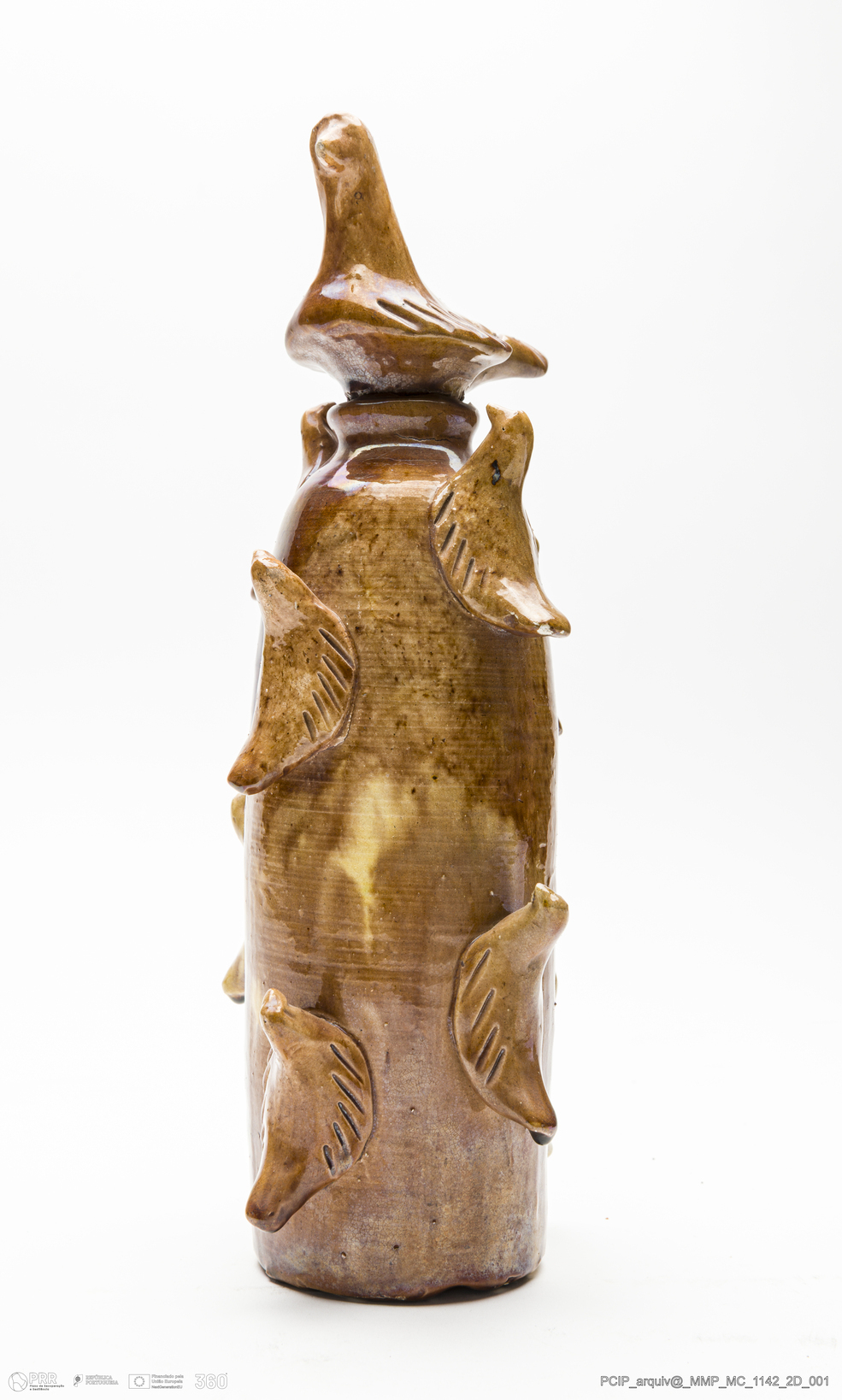 Matéria/Técnica: Barro branco modelado. Vidrado monocromo castanho; Cronologia: século XX; Autoria: Rosa Ramalho; Dimensões (cm): Altura: 27; Largura: 7.