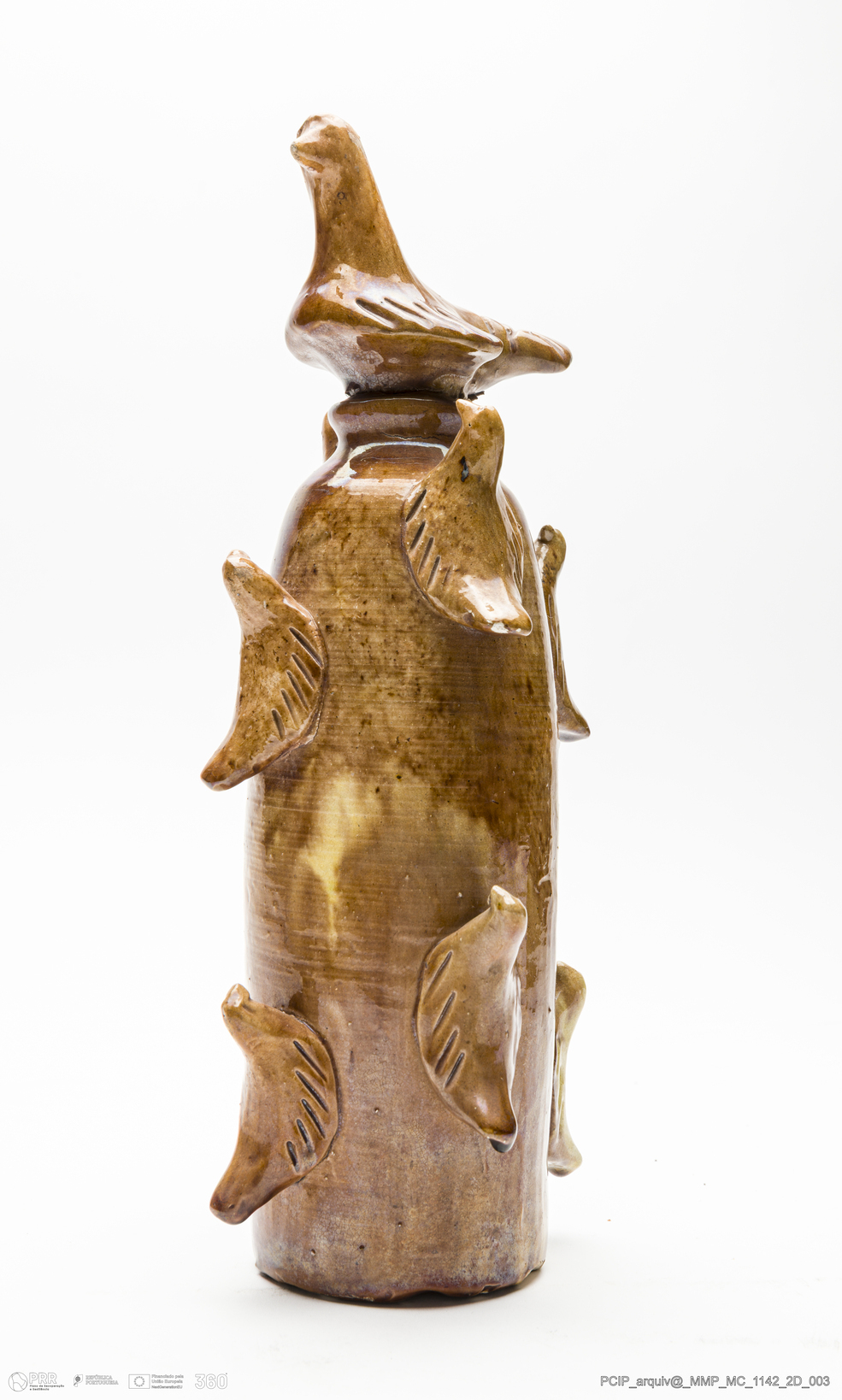 Matéria/Técnica: Barro branco modelado. Vidrado monocromo castanho; Cronologia: século XX; Autoria: Rosa Ramalho; Dimensões (cm): Altura: 27; Largura: 7.