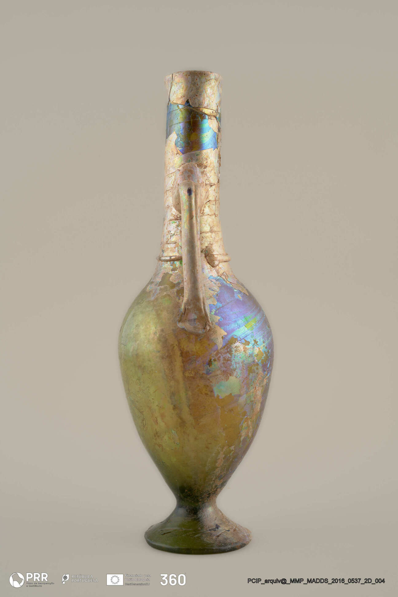 Matéria/Técnica: Vidro; Cronologia: Século V d.C; Autoria: Desconhecida; Dimensões (cm): 25 x 9 x 9.