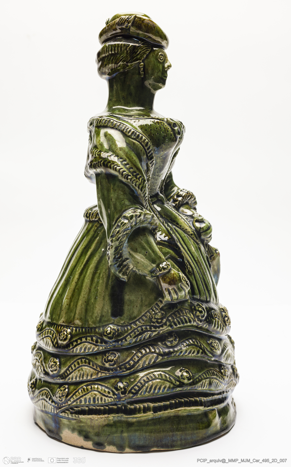 Matéria/Técnica: Barro cozido vidrado; Cronologia: Desconhecida; Autoria: Marca: M.C.G. Manuel Cipriano Gomes, o Mafra; Dimensões: Altura: 29,8 cm.