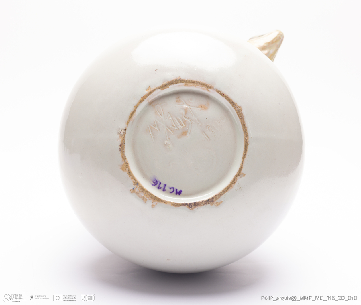Matéria/Técnica: Barro branco moldado e modelado. Vidrado polícromo: castanho, verde e branco; Cronologia: 1906; Autoria: Manuel Gustavo Bordalo Pinheiro / Fábrica Bordalo Pinheiro, Caldas da Rainha; Dimensões (cm): Altura: 31,5; Largura: 27,5; Comprimento: 20.