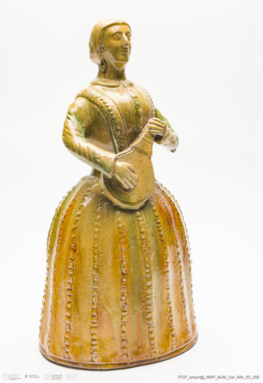 Documento simples. MJM_Cer_494_2D_008 - Garrafa: Mulher Tocando Guitarra