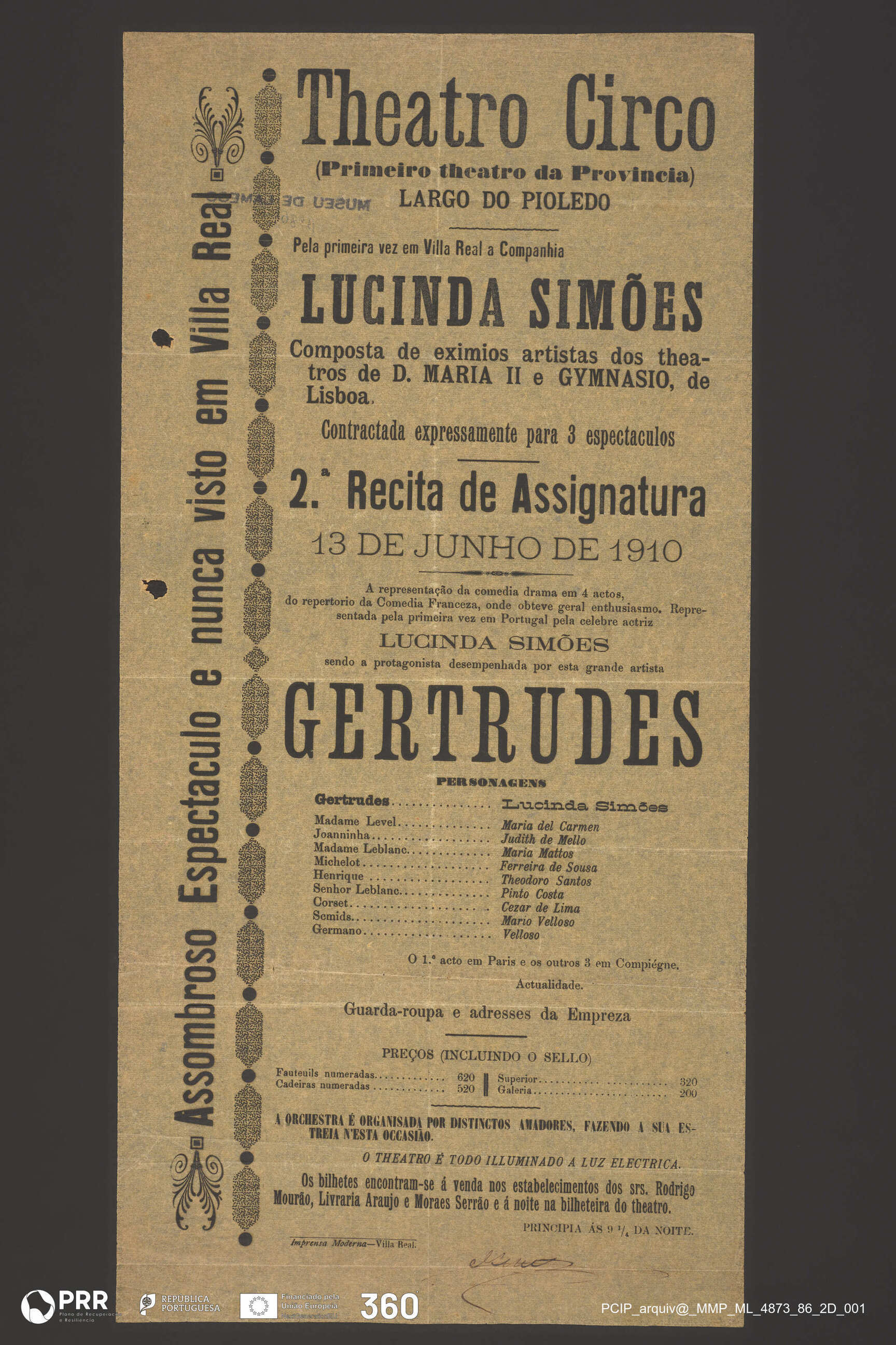Matéria/Técnica: Impressão; Cronologia: 1910; Autoria: Desconhecida; Dimensões (cm): Altura: 42,5 x Comprimento: 20,9.