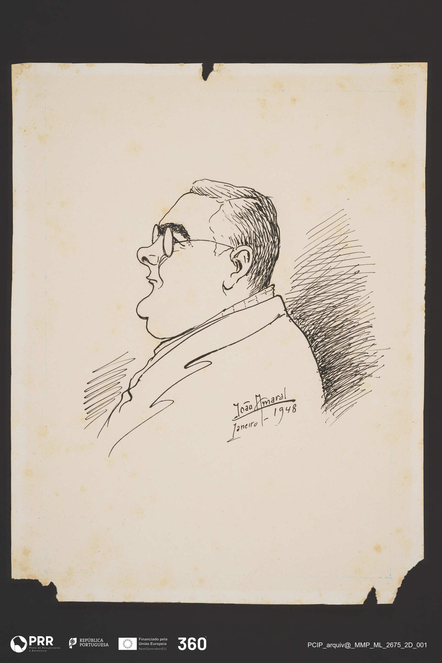 Matéria/Técnica: Desenho à pena; Cronologia: 1948; Autoria: Amaral, João (1874 - 1955); Dimensões (cm): Altura: 27,4 x Largura: 21.