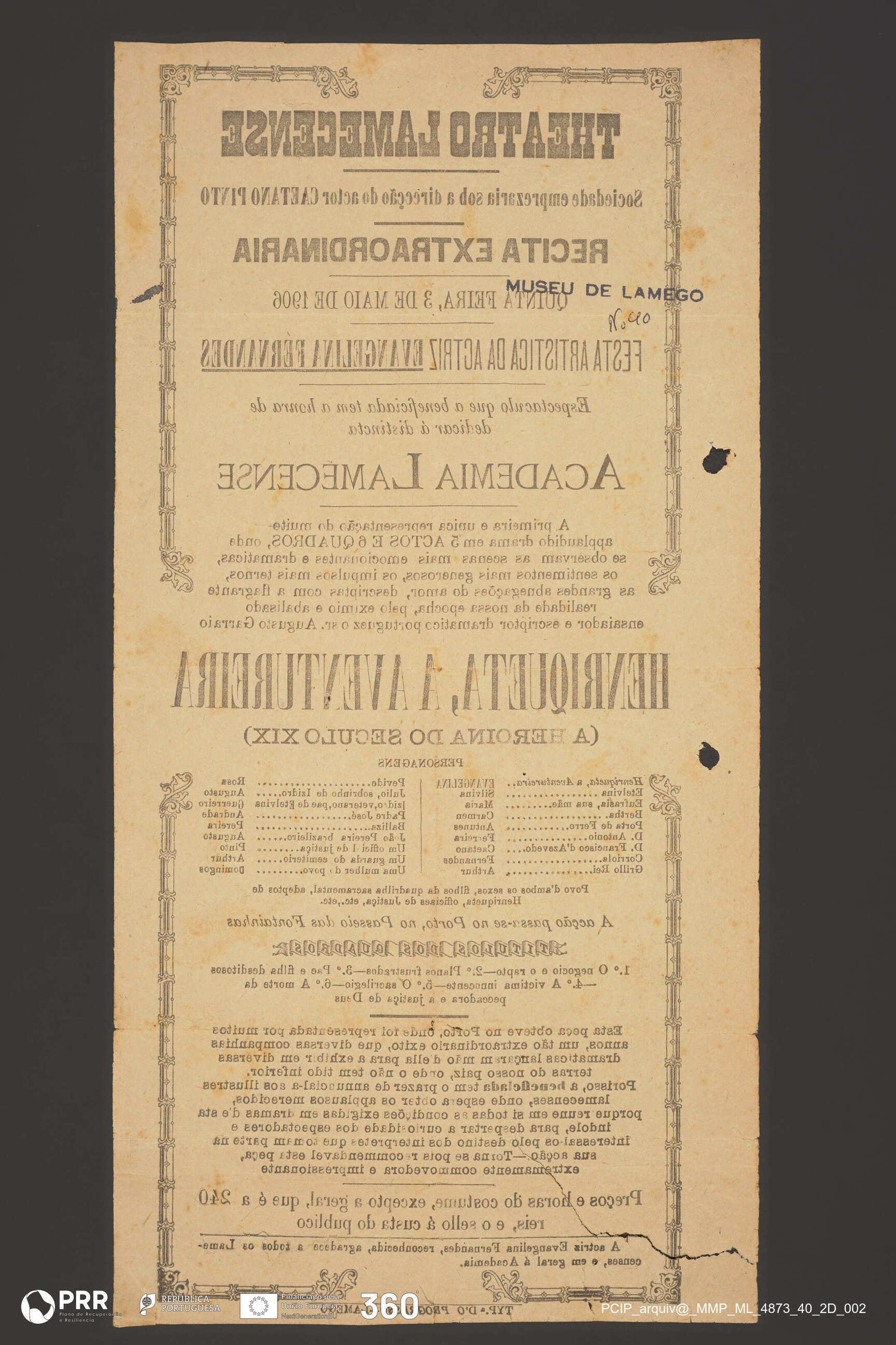 Matéria/Técnica: Impressão; Cronologia: 1906; Autoria: Desconhecida; Dimensões (cm): Altura:35,1 x Comprimento: 17,7.