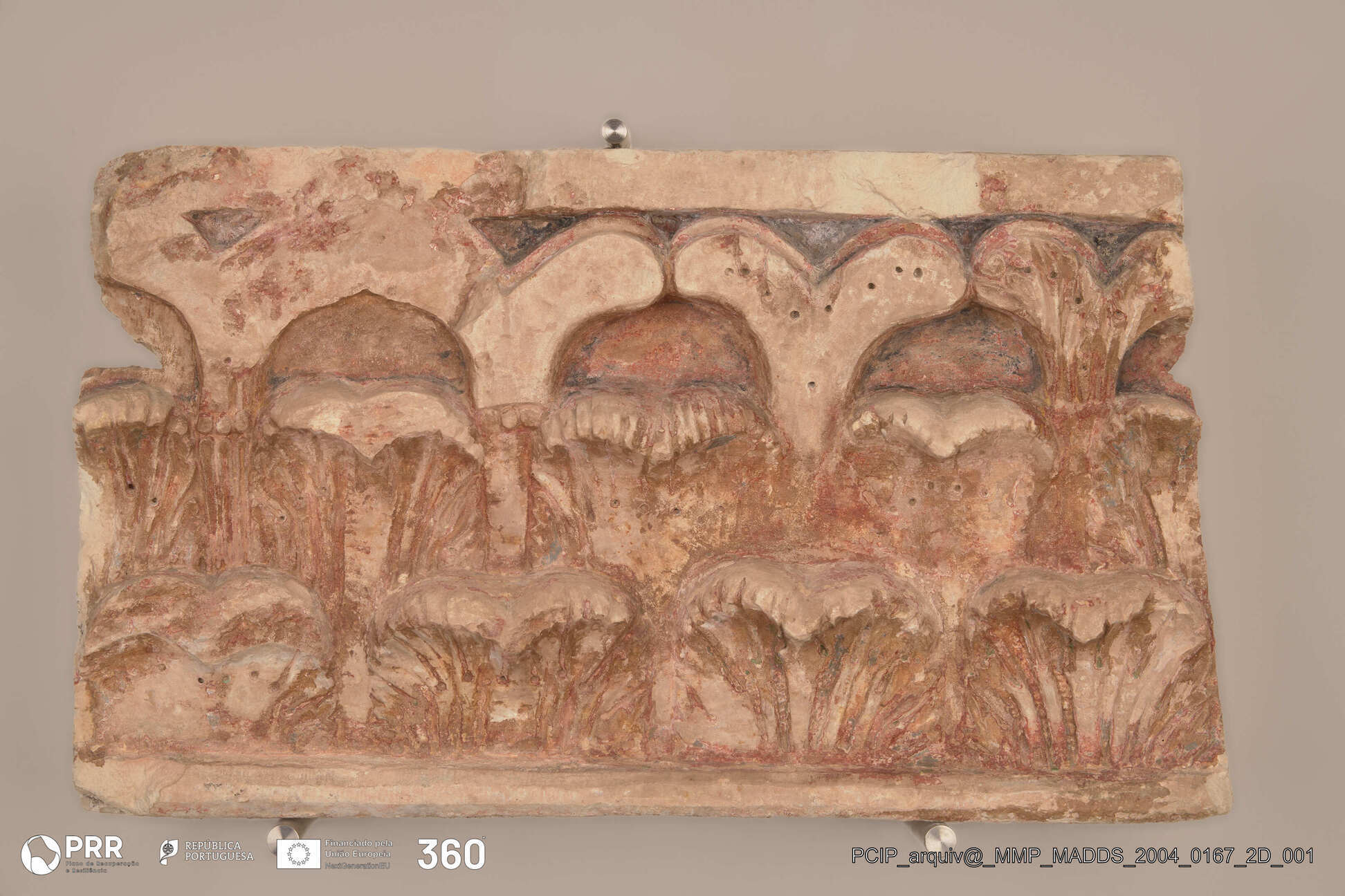 Matéria/Técnica: Calcário; Cronologia: Época Visigótica; Autoria: Desconhecida; Dimensões (cm): 42 x 68 x 21.