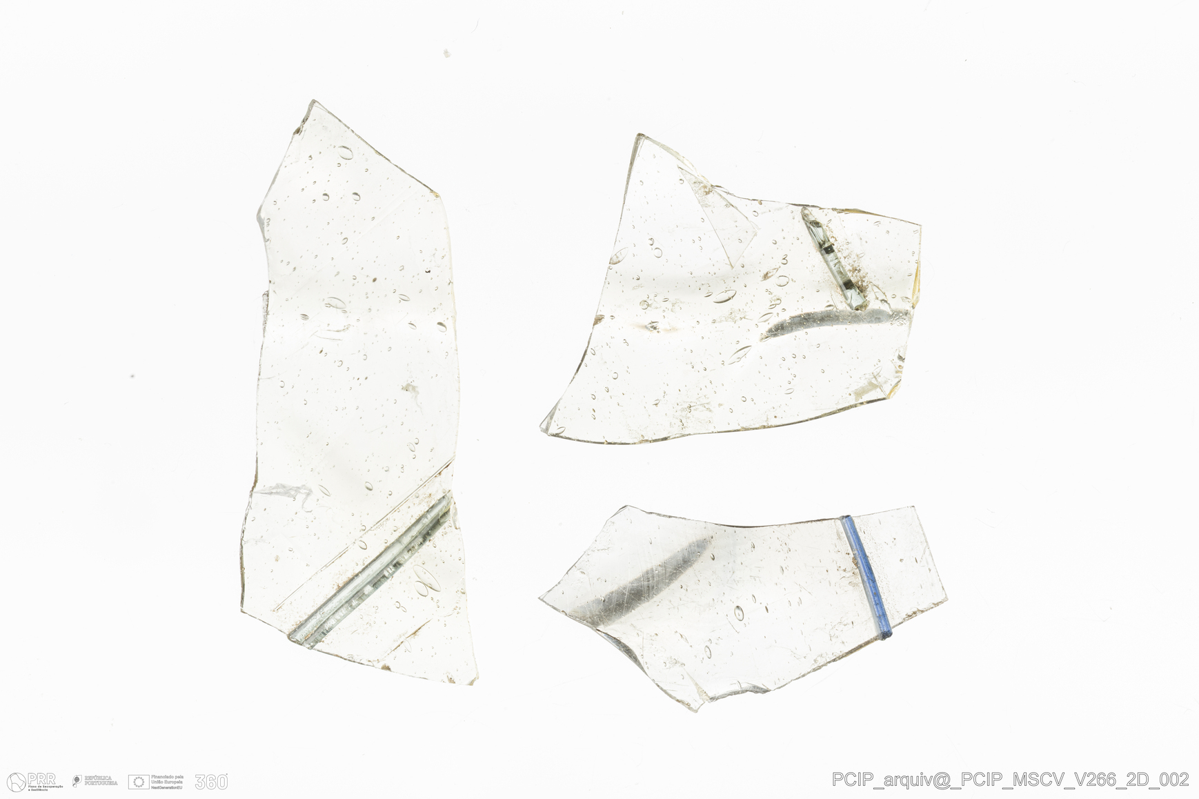 Matéria/Técnica: Vidro; Cronologia: Século XVII; Autoria: Desconhecida; Dimensões: Comprimento: 32mm; Largura: 15mm.