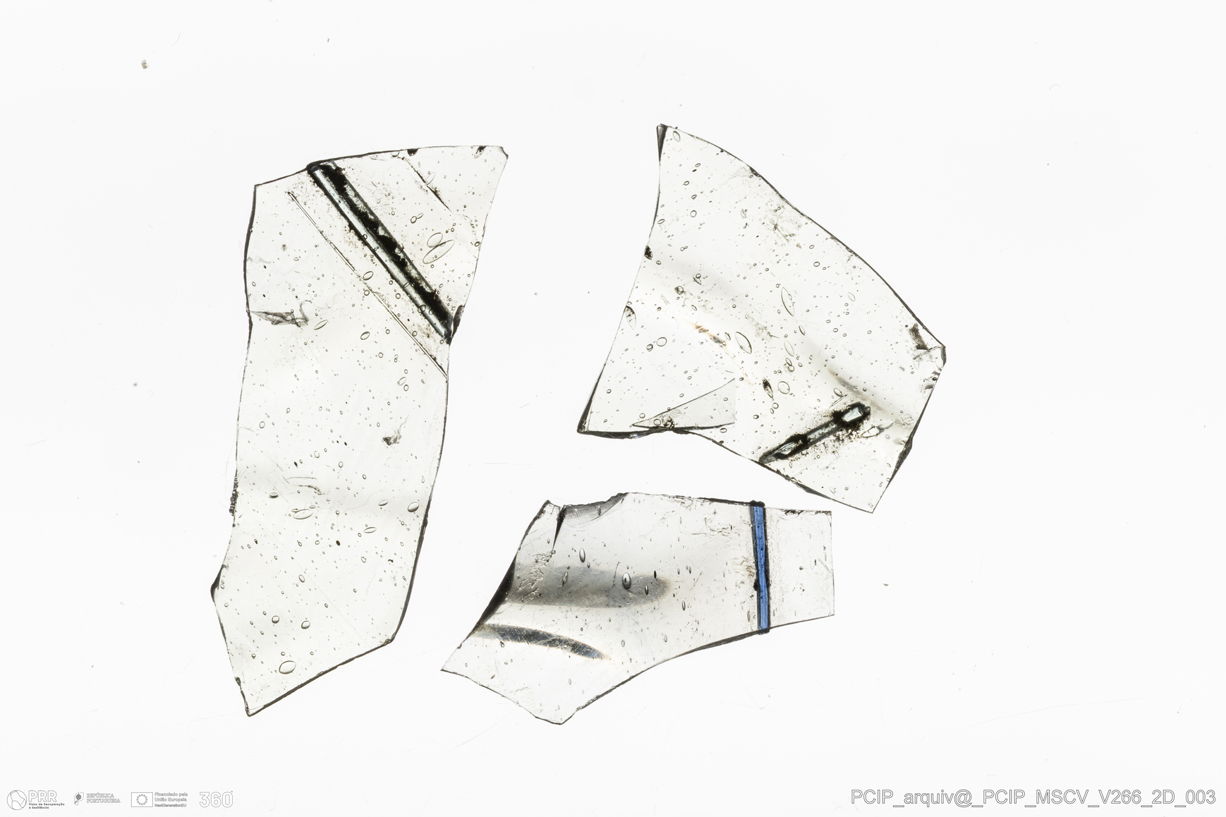 Matéria/Técnica: Vidro; Cronologia: Século XVII; Autoria: Desconhecida; Dimensões: Comprimento: 32mm; Largura: 15mm.