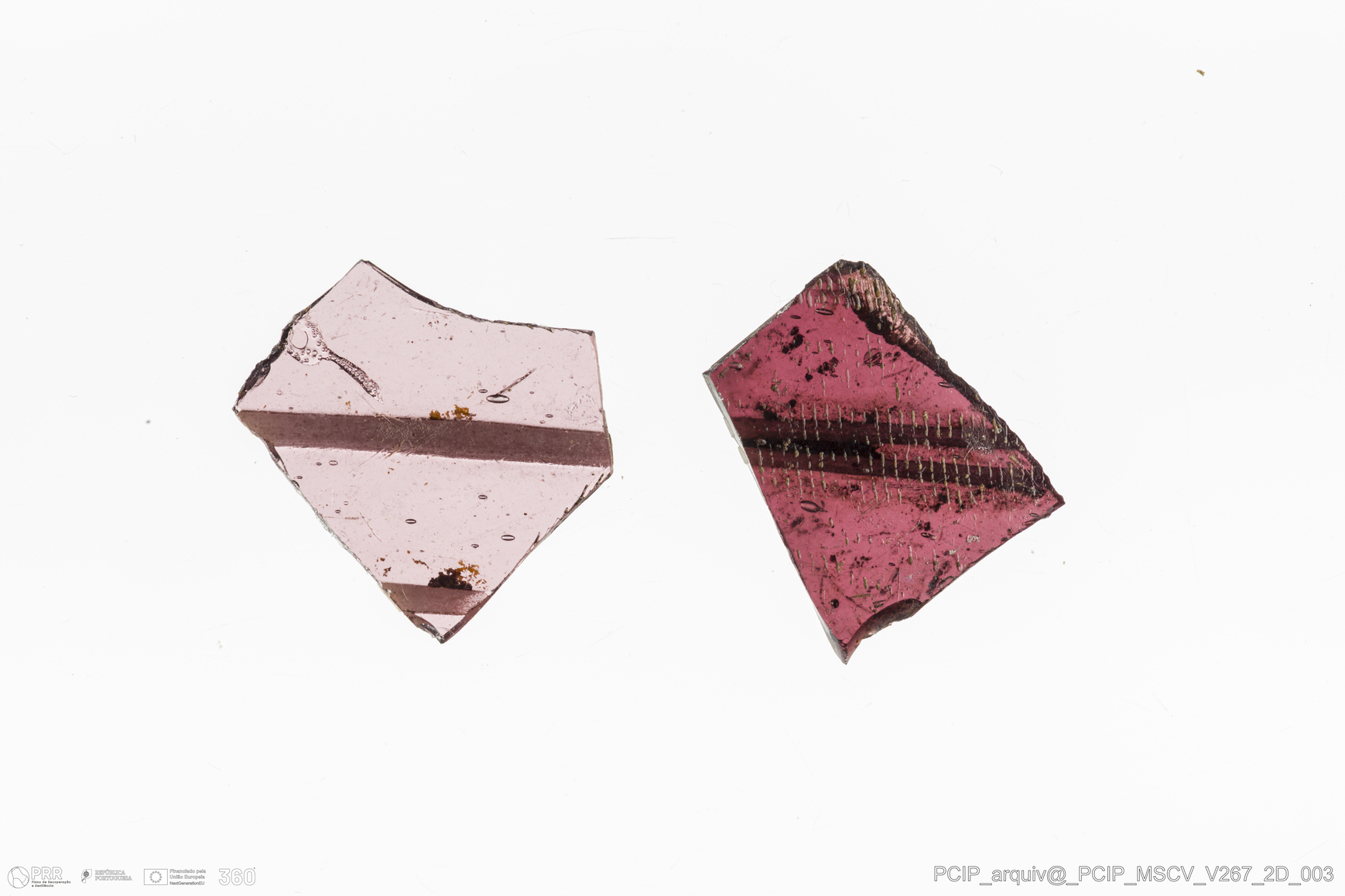 Matéria/Técnica: Vidro; Cronologia: Século XVII; Autoria: Desconhecida; Dimensões: Comprimento: 15mm; Largura: 15mm.